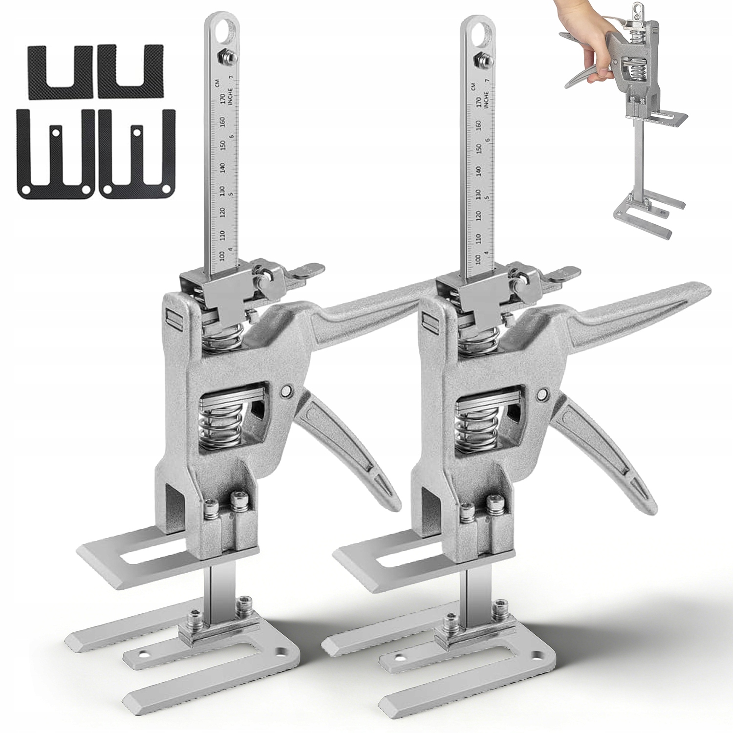 - Покращений підйомник важеля виготовлений з потовщеної нержавіючої сталі та алюмінієвого сплаву. Міцна, масивна сталева основа забезпечує відмінну стабільність без хитання. Розширена поверхня підйомного елемента збільшує поле тиску, що призводить до більшої вантажопідйомності та тривалого терміну служби. Набір з 2 штук - загальна вантажопідйомність до 400 кг.