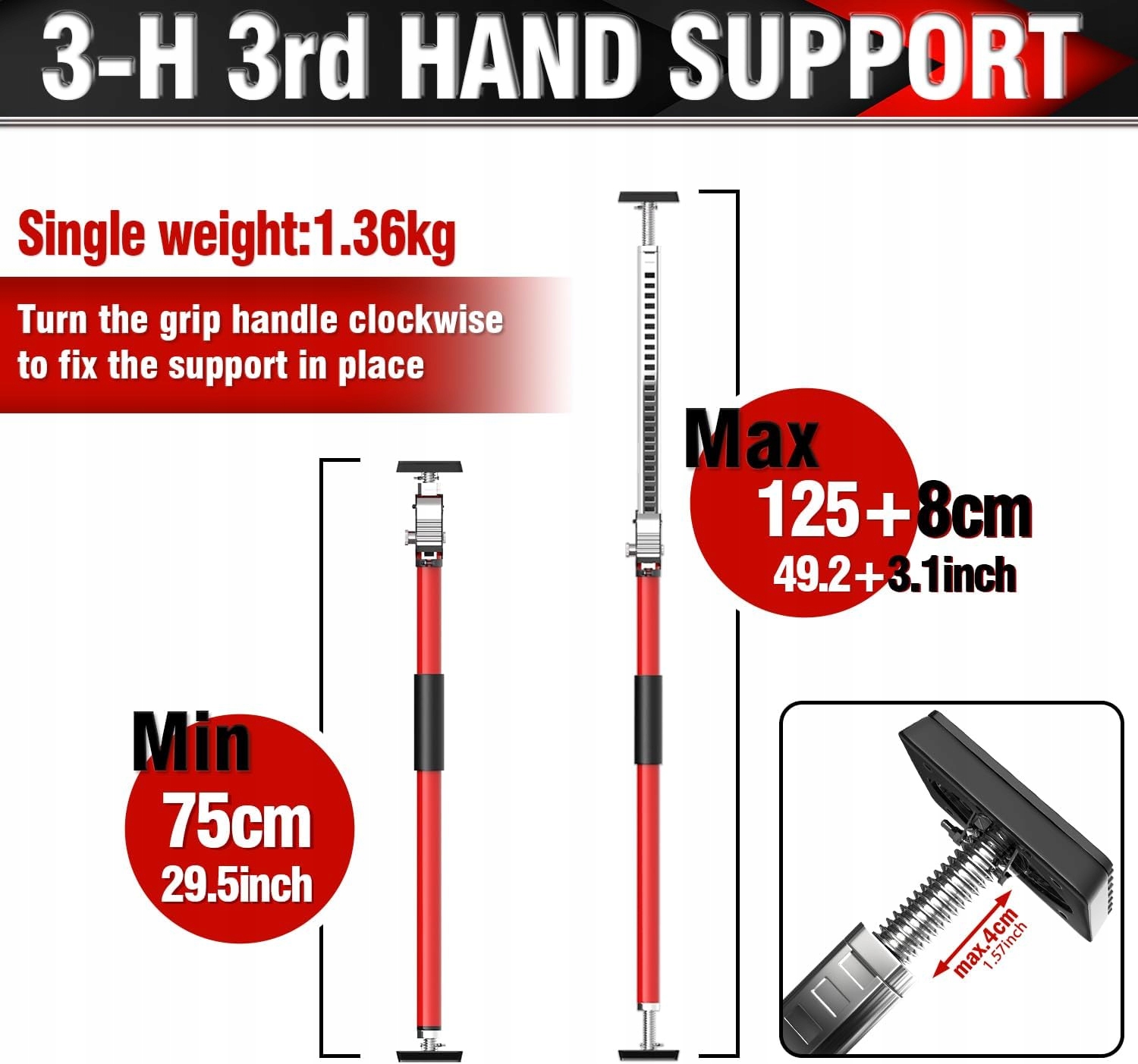 Основні аксесуари для саморобки: набір інструментів для монтажу шафи 3-H із вантажопідйомністю 75 кг (165 фунтів) і розширенням від 75 до 133 см — ваш найкращий партнер у ремонті. Ці інструменти для монтажу шаф ідеально підходять для встановлення кількох елементів на різних рівнях у вашому домі, наприклад підйомників для гіпсокартону, монтажу шаф, паралельного встановлення дверей, плінтусів, підйомників для гіпсокартону, підйомників для шаф, кухонних витяжок, монтажних стовпів тощо.