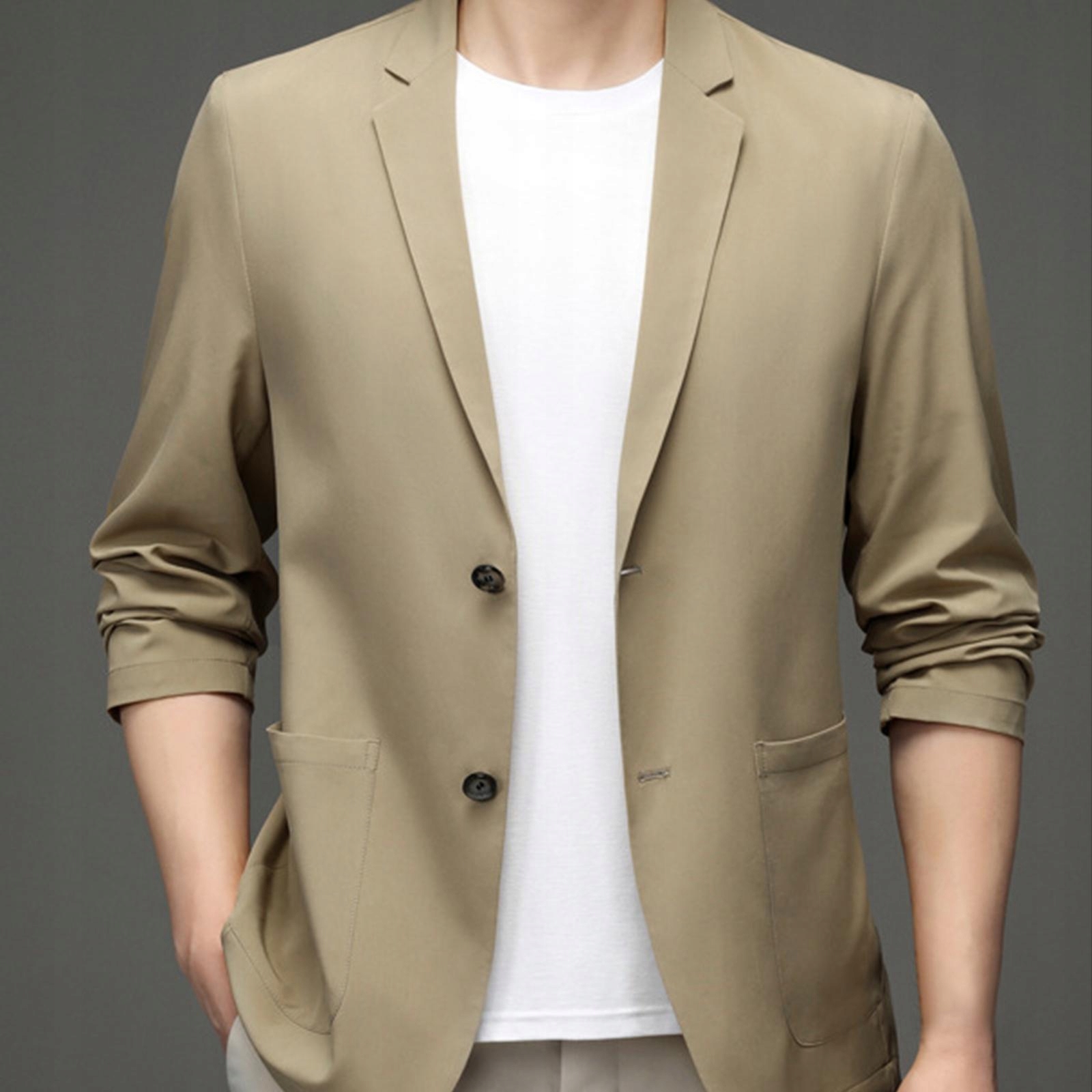 просторий силуетний костюм: це чоловіче покриття має простору фігуру в мінімалістичному вирізанні з декольте та гладким стібком, ідеально підходить як для повсякденного, так і для офіційного носіння.