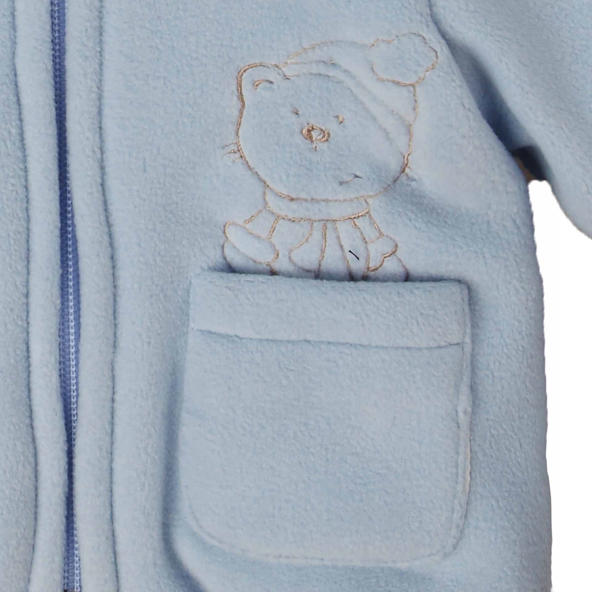 Дівчача утеплена куртка з капюшоном ніжно-блакитного кольору ідеально підійде кожній дівчині в прохолодні осінні дні. Застібається на блискавку, а всередині гарна тепла підкладка. Куртка має витончені манжети на рукавах і нижній частині куртки. Дві маленькі кишеньки та аплікація з ведмедиком додають всьому вбранню дівочий характер.