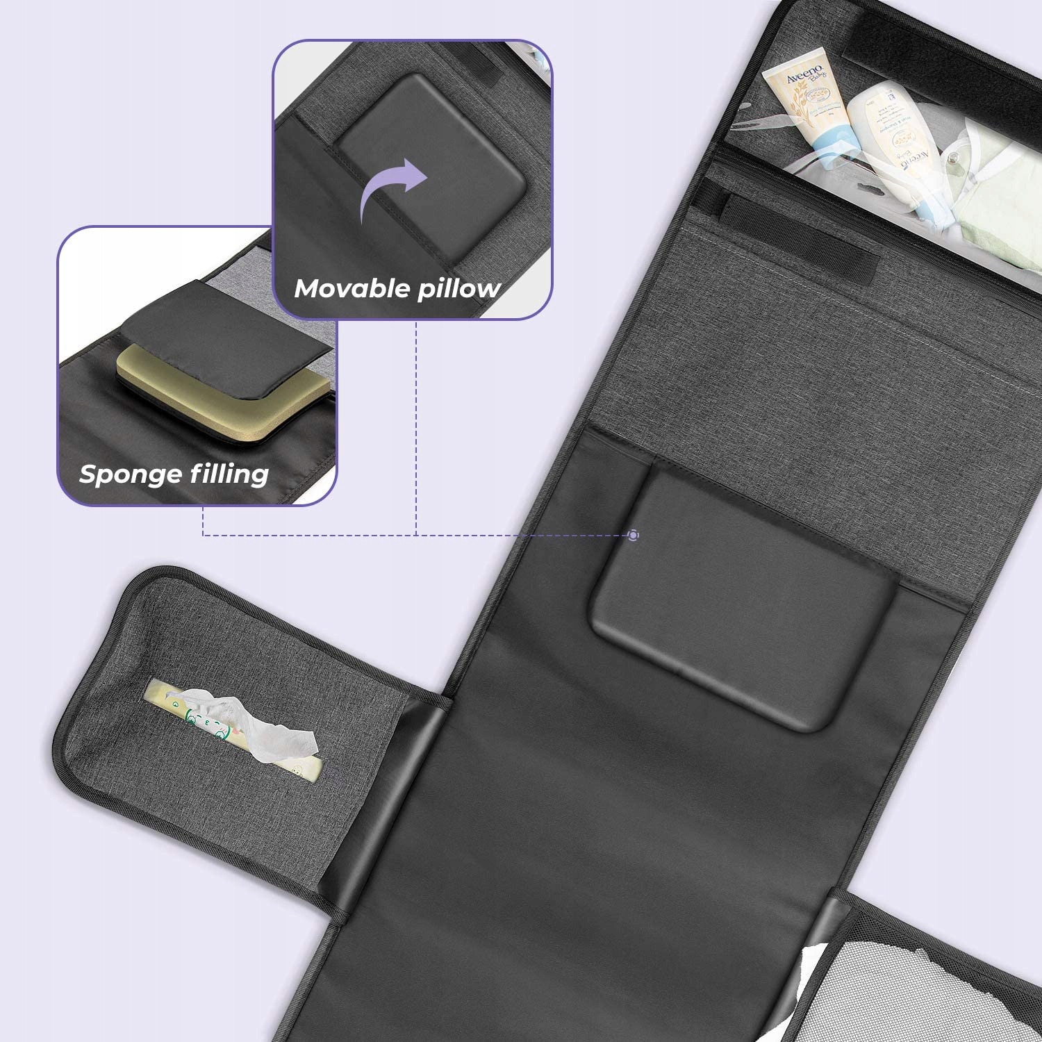 - Велика ємність для зберігання: Складану пеленальну підкладку легко носити вдома, маючи 5 кишень, 1 велику сумку для підгузників, 1 прозору кишеню. із застібкою на липучці для кремів, дитячої олії та 1 великою внутрішньою кишенею для дитячого одягу, 1 відкритою тканинною кишенею, 1 зовнішньою кишенею на блискавці для телефону, ключів.