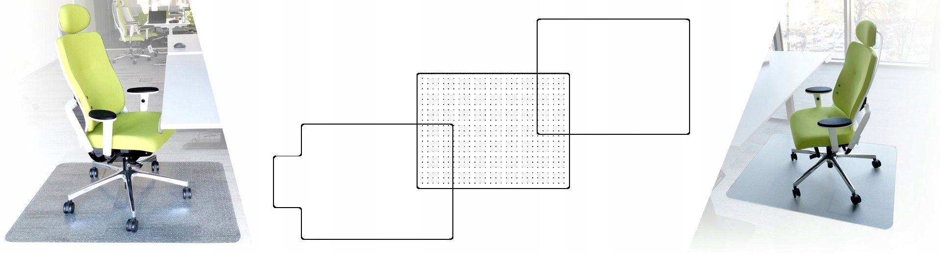 Захисний килимок з міцного ПОЛІКАРБОНАТУ. Міцний і стійкий до пошкоджень відповідно до стандарту DIN EN 425 для засобів індивідуального захисту. Не містить ПВХ і шкідливих фталатів, присутність яких у предметах побуту може викликати багато захворювань. Підходить для алергіків. Ефективно захищає підлогу від пошкоджень, викликаних переміщенням крісла в одному місці. Приглушує шум коліс, що котяться по підлозі. Надійні закруглені кути захищають від спотикання. Використовується в офісі та вдома, підходить для теплої підлоги. Знизу є шпильки, що стабілізують килимок на м'якій поверхні (килим/ковролін), верх текстурований. Розміри: 1200 х 900 мм