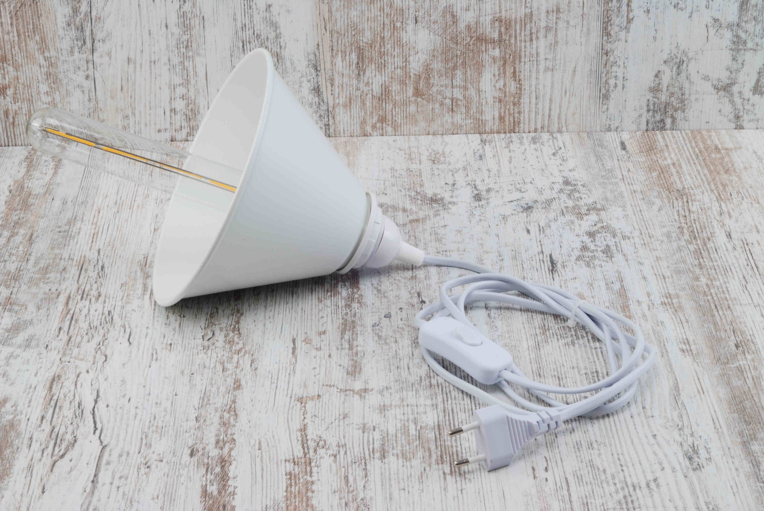 підключення 2 м білого кабелю з вилкою, вимикачем і розеткою, кабель лампи