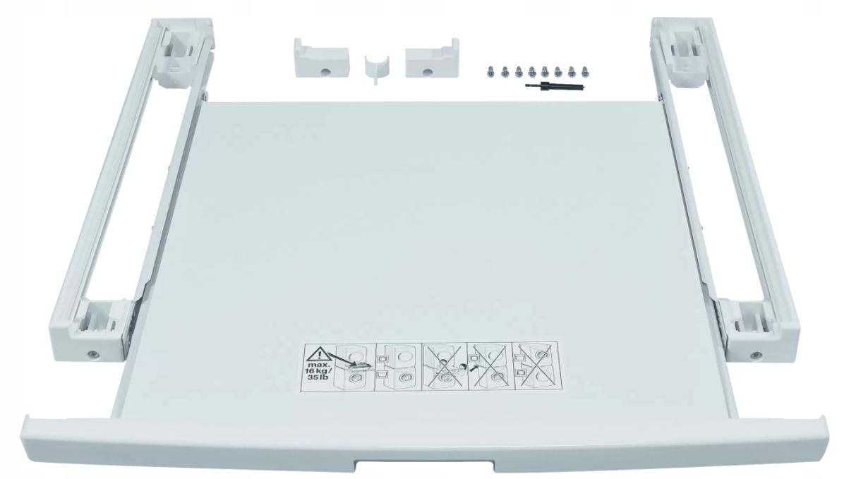 - З’єднувач із висувною шухлядою для розміщення сушильної машини на верхній частині пральної машини, для серії IQ800. WT45H… , WT45W… , WT7H…. на повнорозмірній пральній машині