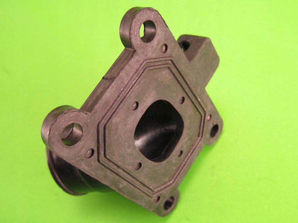 Предметом пропозиції є гумовий впускний колектор для працюючого двигуна Minarelli AM6, який видно на фото.