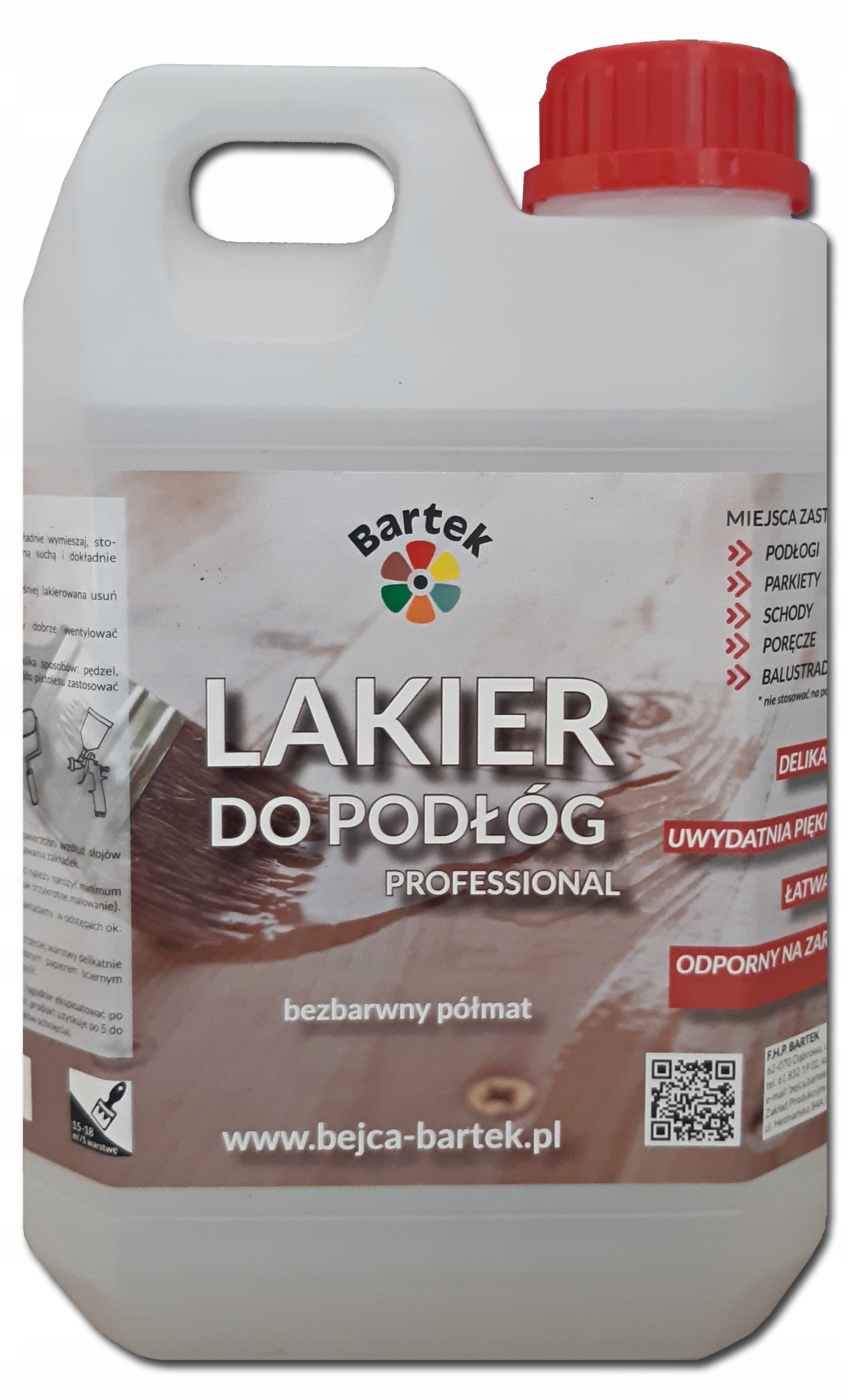 Професійний лак підлоги використовується для малювання підлоги, паркетів, сходів, поручнів та балюстрадів, виготовлених з дерева. Це підсилює красу деревини, легко наноситься і має делікатний запах, стійкий до миття агентів. Легке застосування пензлем, роликом або фарбою. Bartek упаковка :