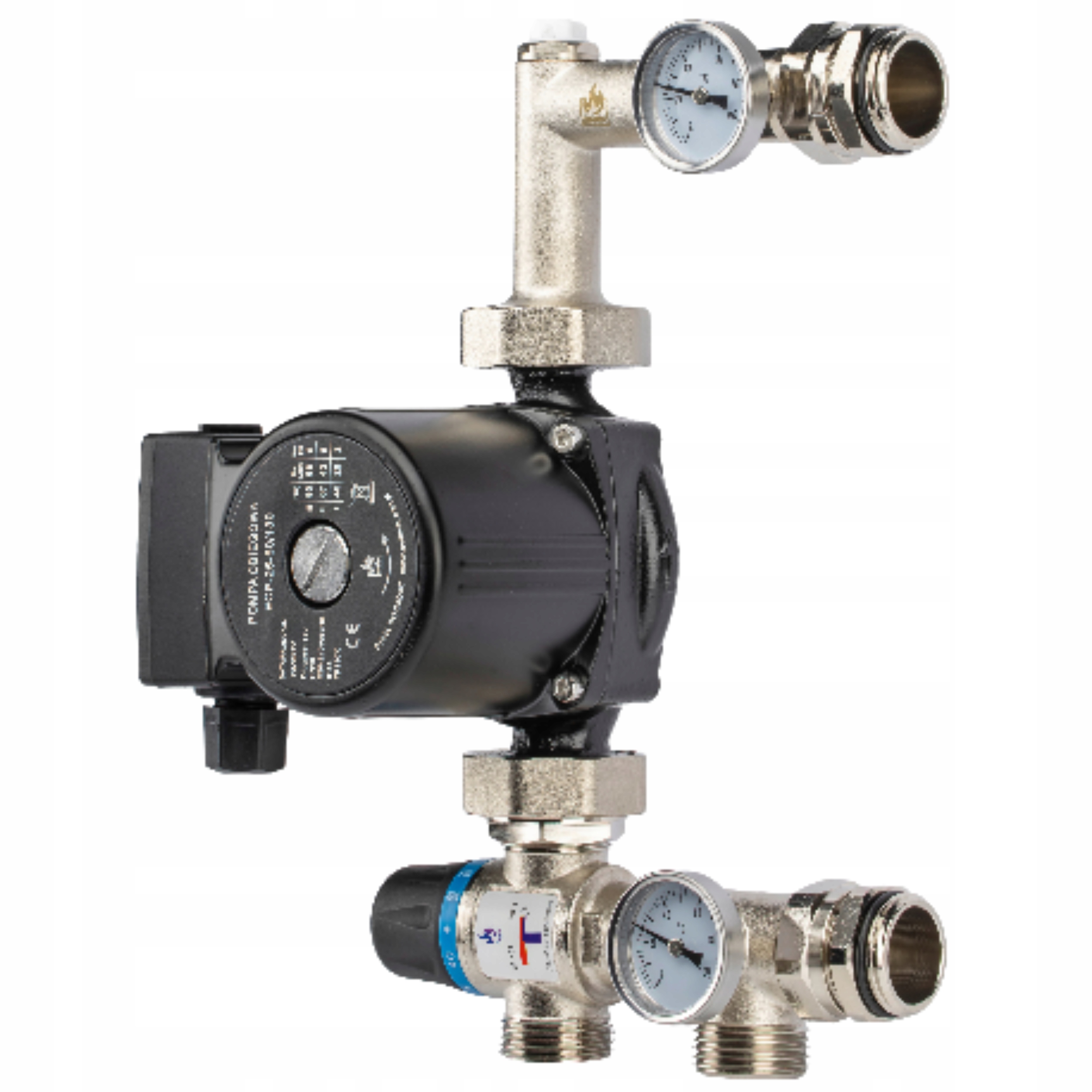 Повні набори нагрівання під поверхнею та змішані системи: група змішування Damix з нікелем із 3 -х -швидкоплинним насосом та термостатичним клапаном, а також 6 -кілометровою інвени з ротаметерами, вставки для приводів та повної фурнітури. Це дозволяє регулювати температуру (20-45 ° C), контроль потоку та зручну установку в шафі дистриб'ютора. 4 3 пробігу для примусового циркуляції води в Co. KVS 2,5 м³/год.
