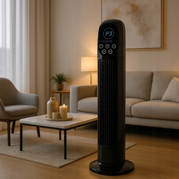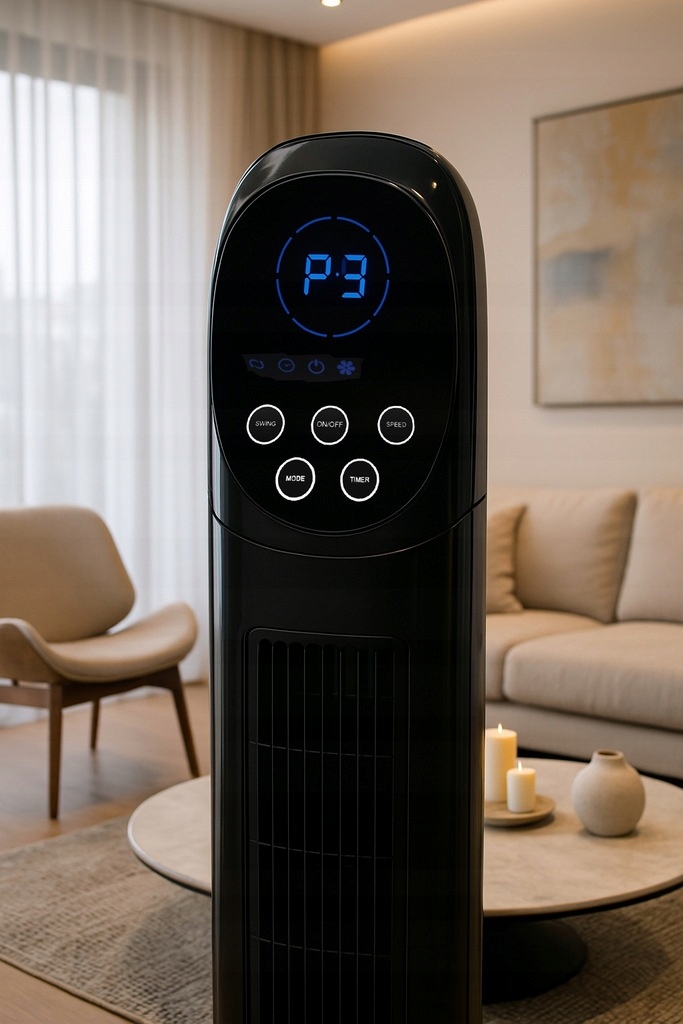 Завдяки вертикальному дизайну, вентилятор ідеально впишеться в будь -який інтер'єр - від вітальні через спальню до офісу. Сучасний, потужний двигун забезпечує ефективний потік повітря з мінімальним шумом , а коливання 90 ° ефективно розподіляє холод по всій кімнаті.