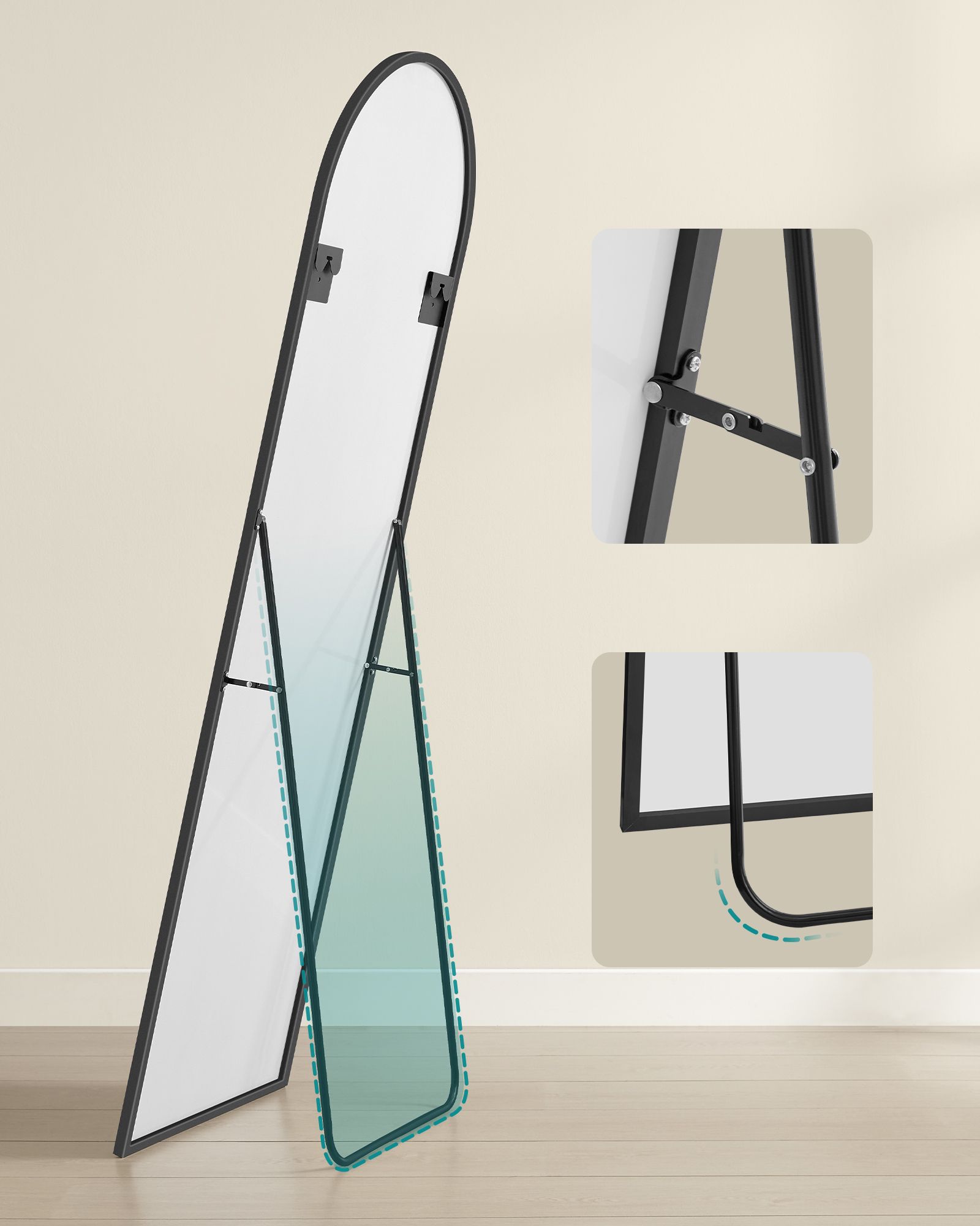 Велике стояче дзеркало з чорною рамою 160x50 см