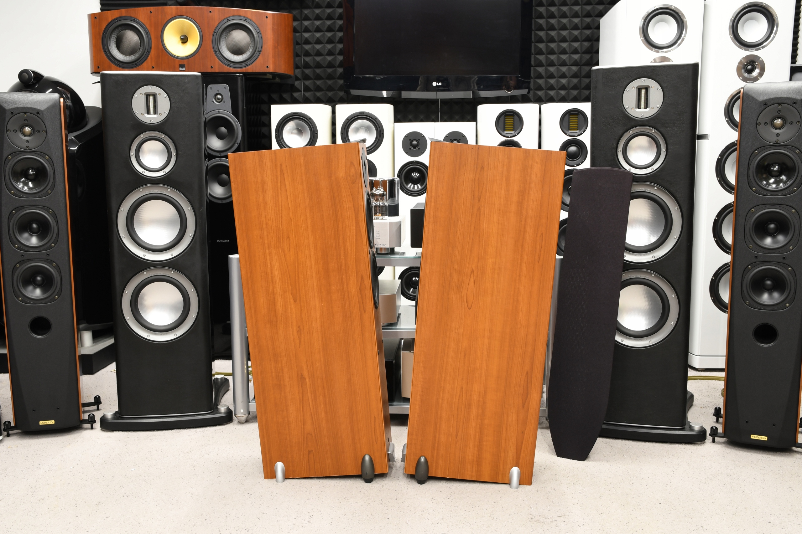 Динаміки мають невеликі подряпини та невеликі вм'ятини на корпусах, характерні для нормального використання. Використовуються вищі передні ніжки, завдяки чому динаміки трохи нахилені назад - це рішення справді покращує сцену, когерентність і контроль звуку, особливо в середніх і низьких діапазонах.