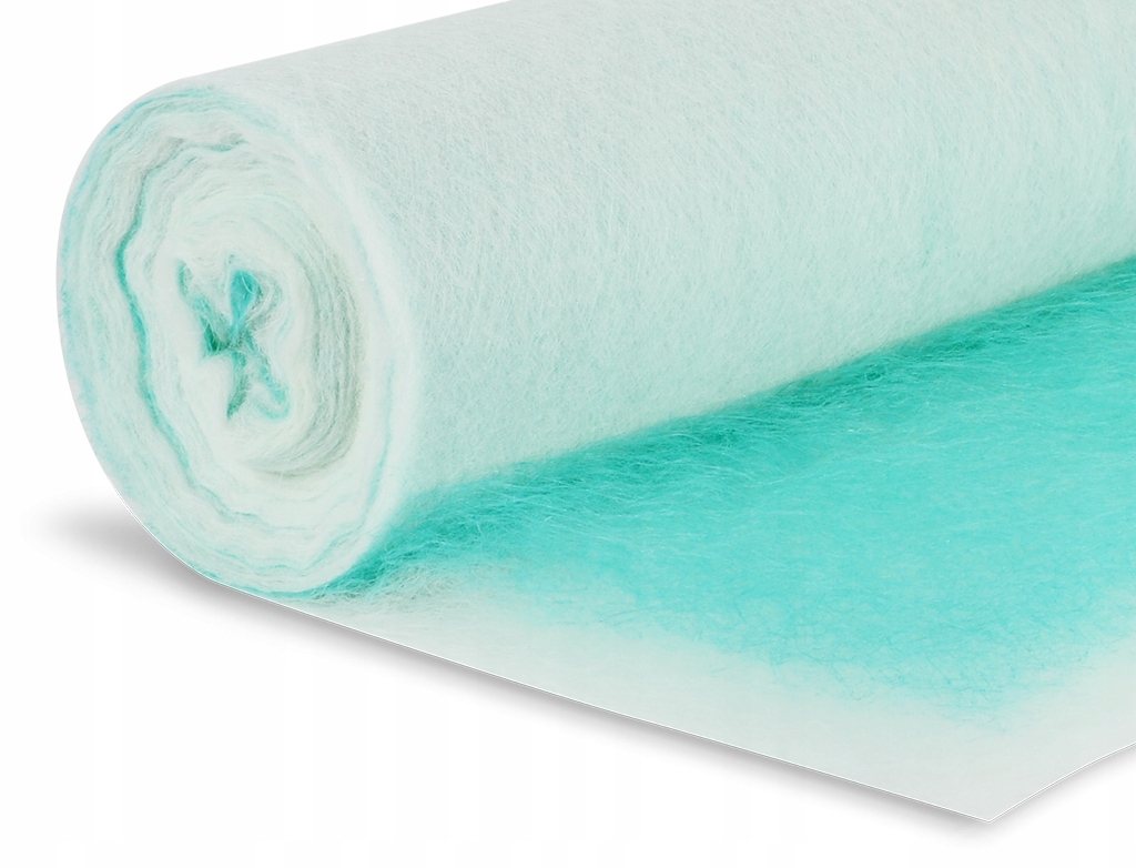 Підлоговий фільтр-мат зелений і білий APP PAINT STOP o G3 фільтрація клас призначений для захоплення розпиленої звичайної та водоемульсійної фарби в установках для фарбування розпилювачами під час виробництва автомобілів, фарбувальних камерах та мокрому промисловому фарбуванні: меблів, вікон, деталей машин тощо. Поступово встановлений сухий фільтр із 100% скловолокна має форму тривимірний гнучкий килимок Щільність фільтра збільшується в напрямку потоку повітря Зелений колір з боку входу повітря.