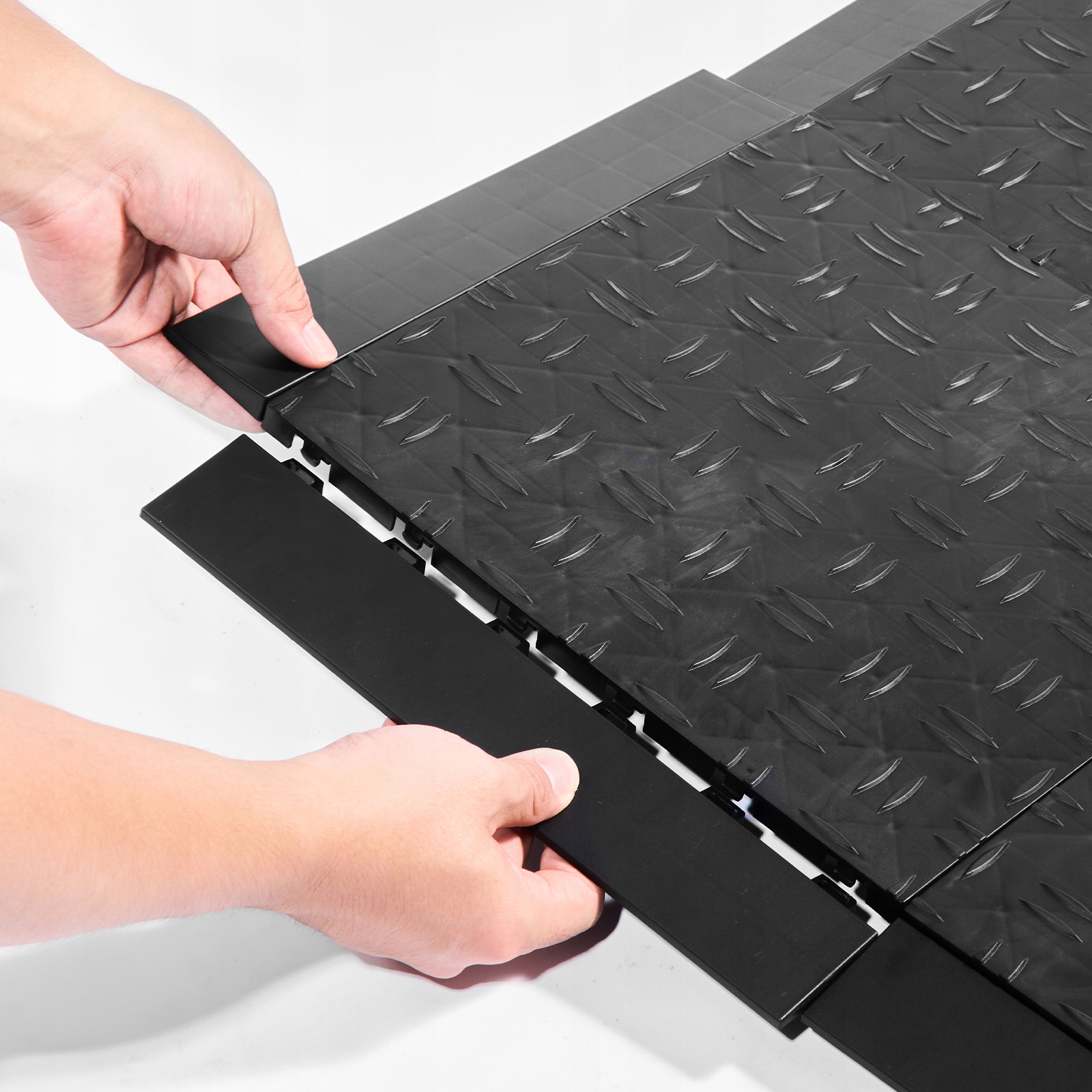 Сумісність із 4-сторонніми килимками VEVOR PVC. Один набір захисних країв забезпечує повний захист 8-компонентних, 4-сторонніх, з’єднаних ПВХ гаражних килимків.