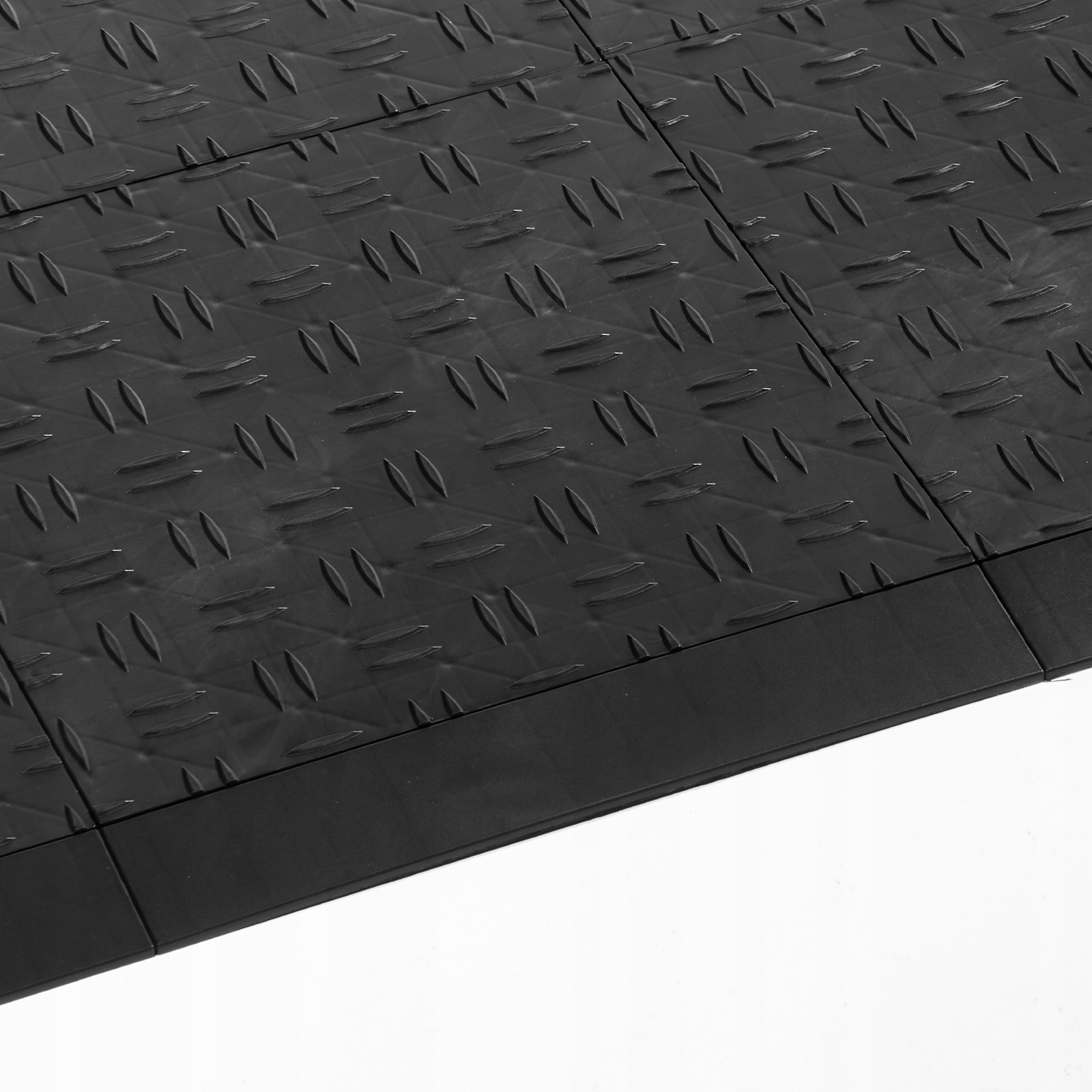 Цей набір плитки для підлоги гаража підходить для використання на торгових доріжках або складах. Зменшує ризик ковзання, спотикання та застрягання коліс, а також стійкий до плям і вицвітання.
