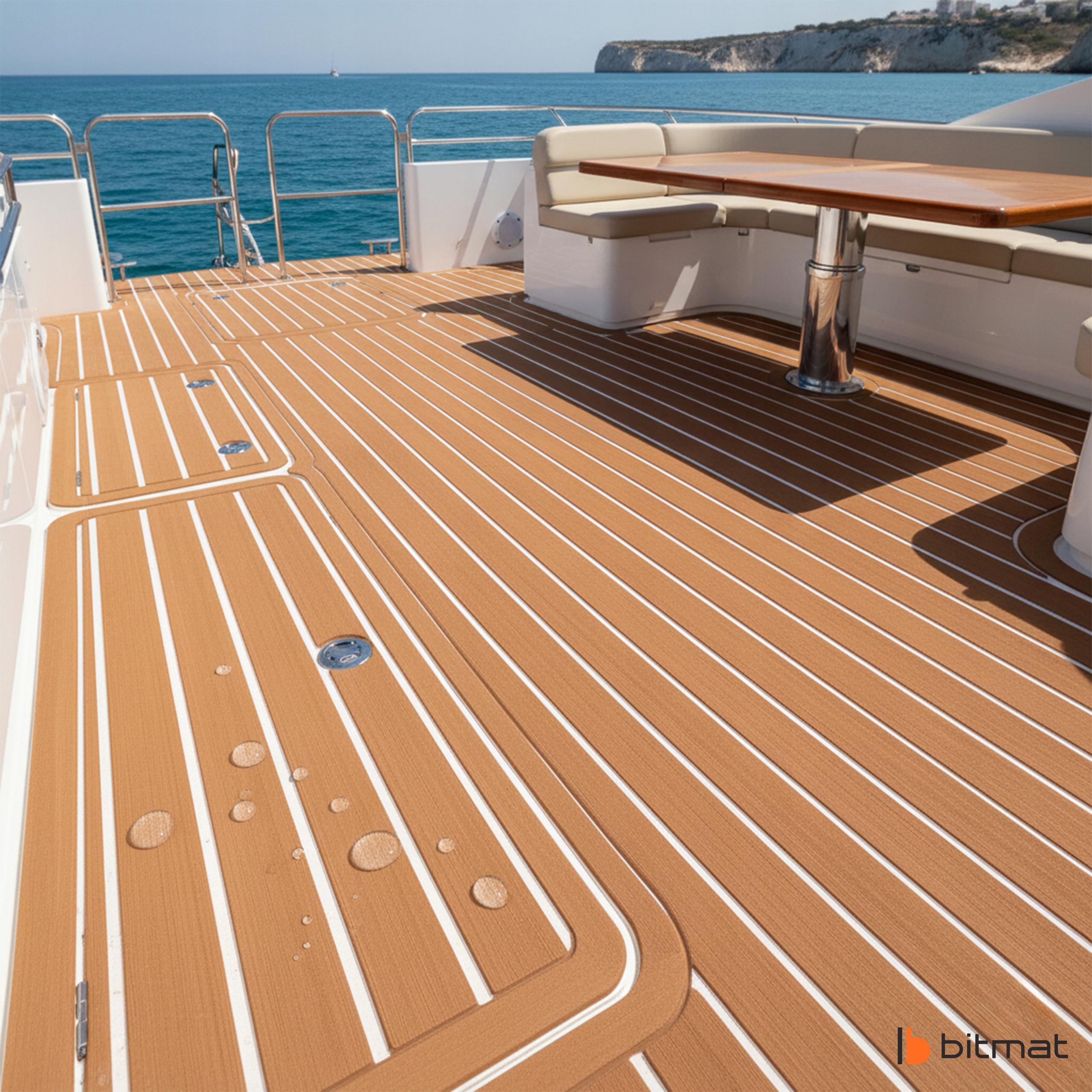 Предметом пропозиції є високоякісна панель з спіненого EVA елегантного кольору Teak White, що ідеально імітує натуральне тикове дерево. Піна EVA - це синтетичний замінник деревини, стійкий до морської корозії, солоної води і, найголовніше, до УФ-випромінювання. Має потрійний захист від старіння і вицвітання, що гарантує збереження кольору і цілісності протягом багатьох років. Піна EVA не вбирає воду. На додаток до чудового дренажу води, його внутрішня структура має закриту комірку, яка ефективно зберігає палубу сухою.