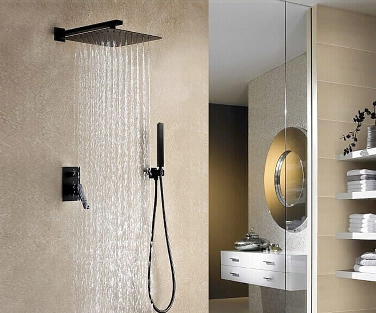 Матовий чорний душовий гарнітур прихованого монтажу з функцією EBOX.