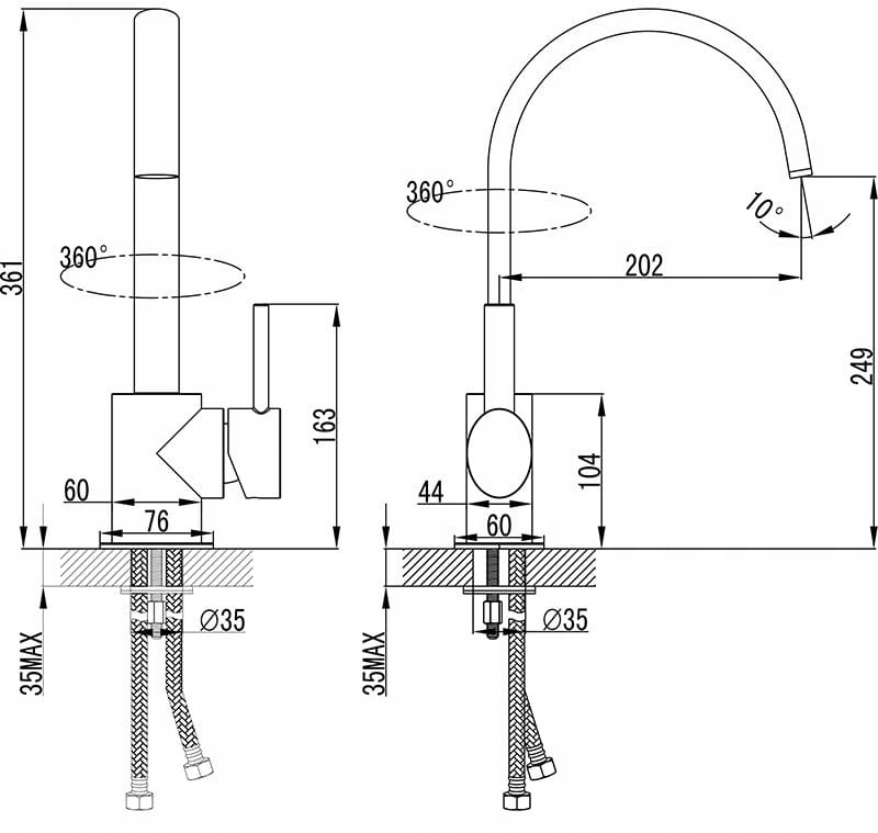 - рекомендовано: для класичних умивальників, а також для настільних умивальників, як кухонний змішувач
