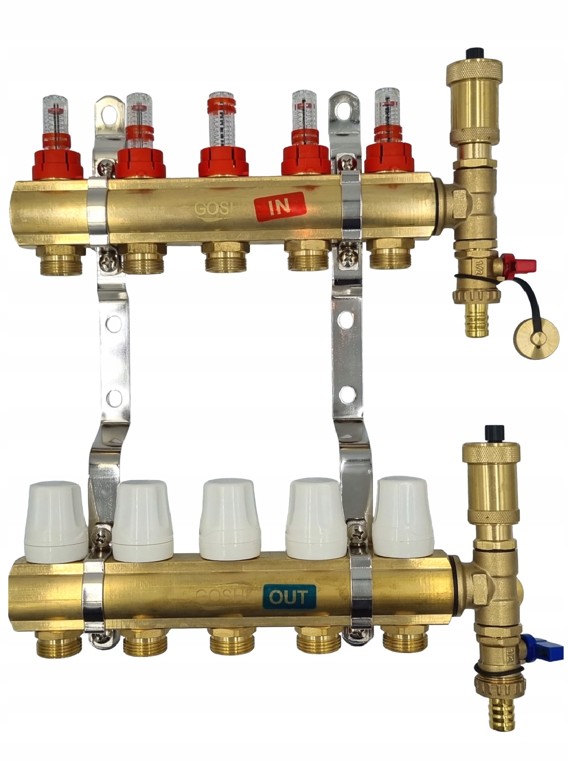 ПІДЛОГОВИЙ РОЗПОДІЛЬНИК GOSHE 5 КОНТУРІВ, ЛАТУНЬ