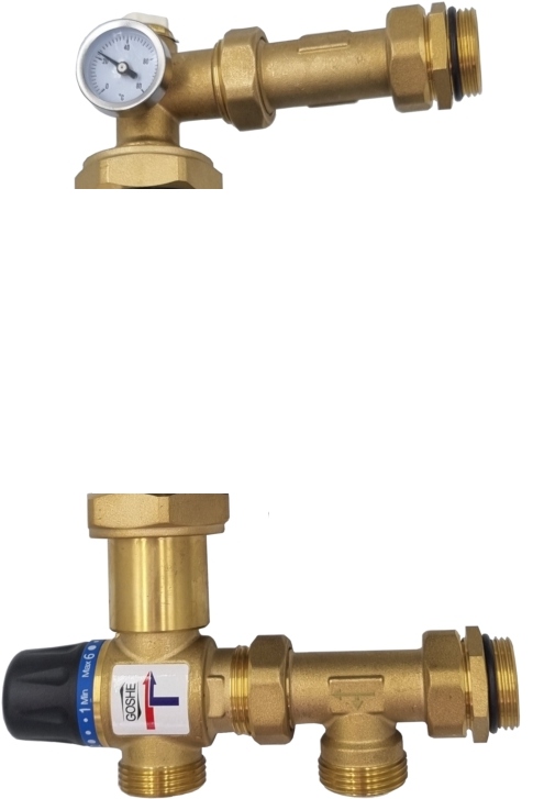- Група, яка автоматично регулює температуру води під підлогою відповідно до налаштування клапана і захищає систему від надто високих температур.
