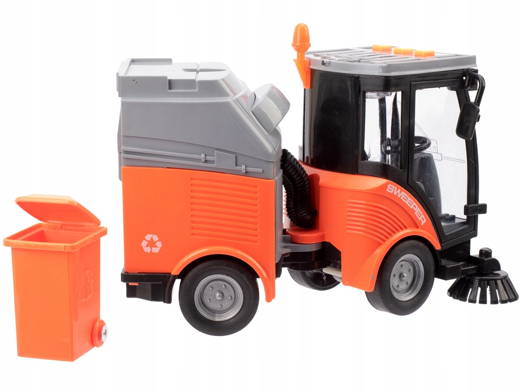 Помаранчево-сіра підмітальна машинка принесе хлопчикам багато задоволення та багато задоволення. На салоні є кнопки, які вмикають світлодіодне освітлення в салоні і звук двигуна, заднього ходу або гудка - як у справжній машині!
