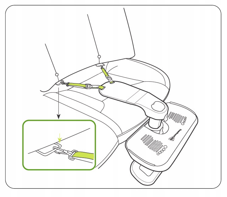 - допомагає зберігати безпечне та правильне положення на сидінні,