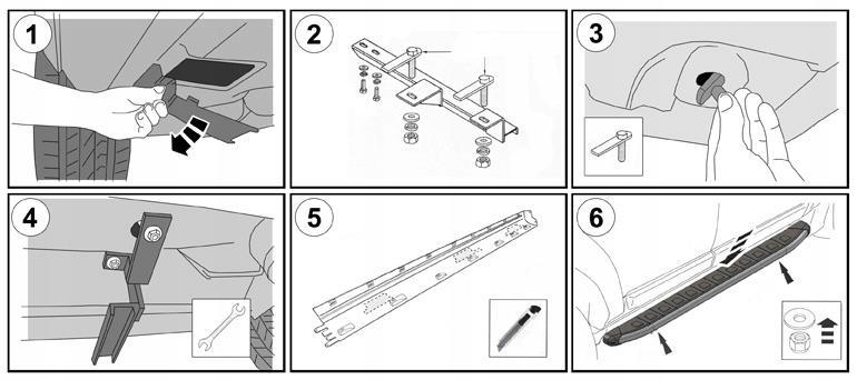 ✅ Підготуйте всі необхідні елементи для встановлення порогів, такі як гвинти, шайби та гайки (є в комплекті).