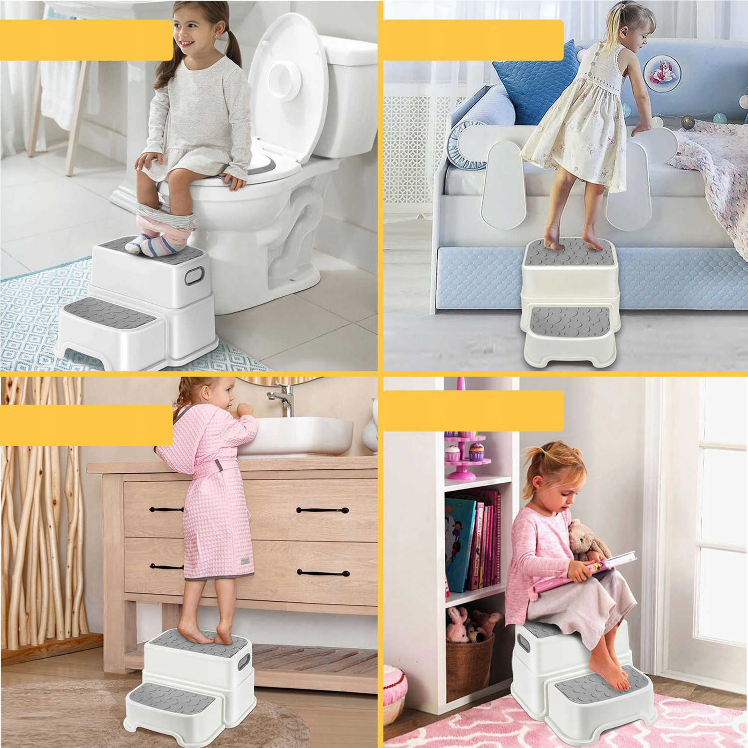 【Універсальний】 Крок дитячого може використовуватися як табурет, стілець або навчитися використовувати туалет. Він пропонує дітям різноманітні програми та росте з ними.