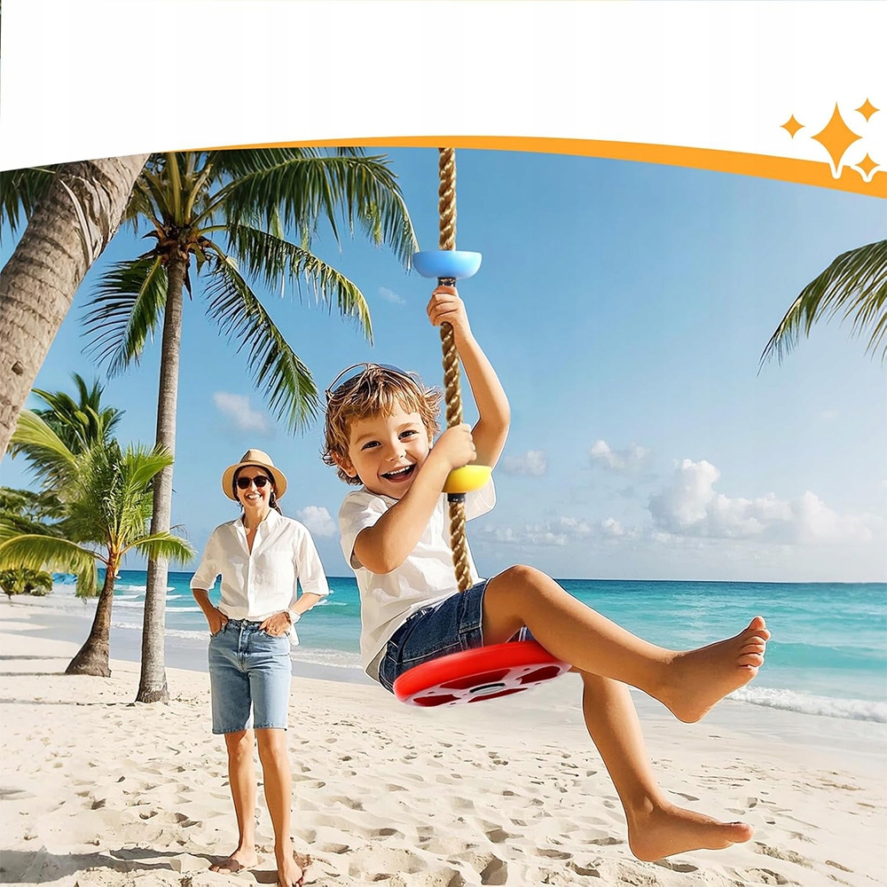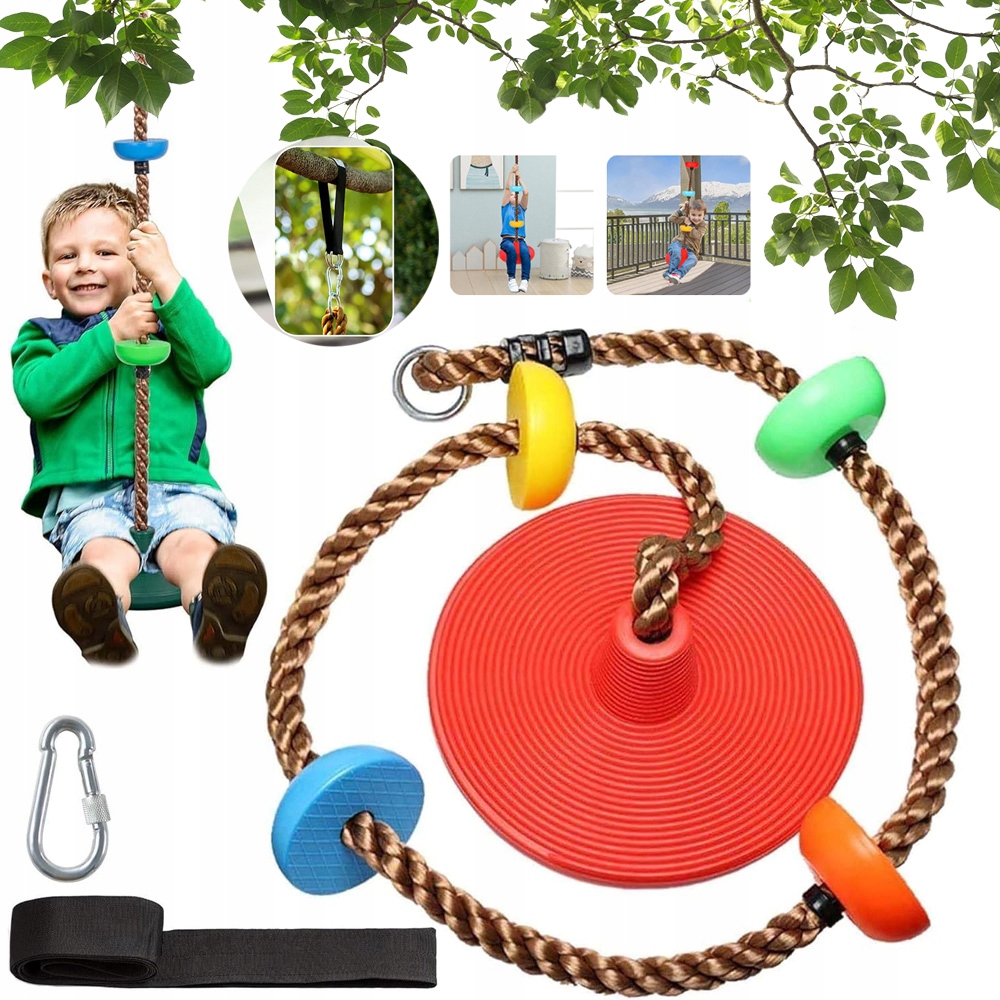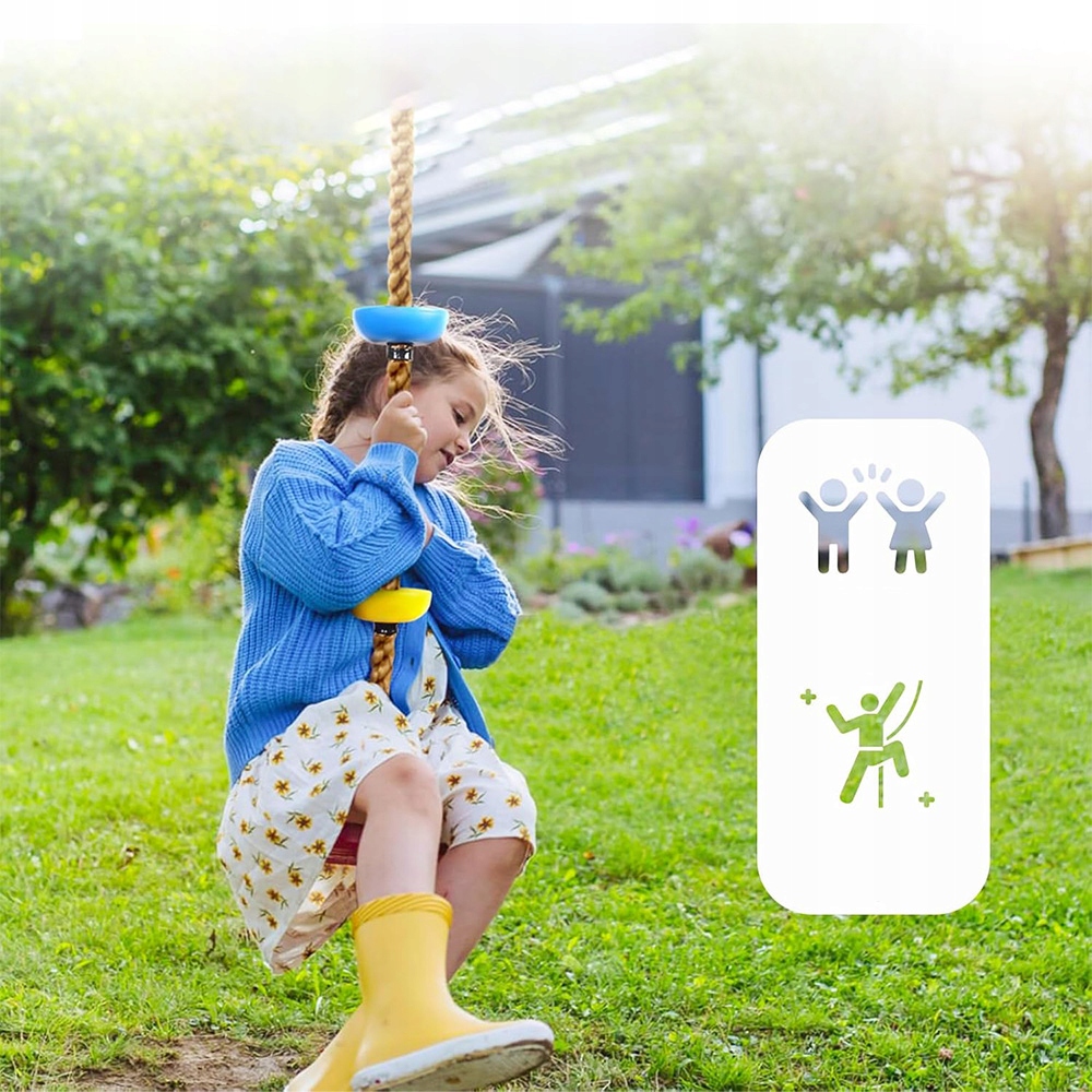 Підйом на диск вимагає зусиль багатьох м’язових груп, плечі повинні нести вагу тіла, ноги повинні ефективно підтягнутись, а головне - м’язи живота, відповідальні за підтягування. Сидіння виготовлене з матеріалів з високою обтяжкою та легкістю, що гарантує, що гойдалка повністю безпечна у використанні. Це незвичайне місце дуже безпечне, тому що дитина, яка сидить на ньому, має мотузку між ніг і повинна тримати мотузку обома руками. Це прекрасний спосіб поєднати безпечні розваги та фізичні навантаження, покращити фізичну придатність дітей та забезпечити їм розваги на відкритому повітрі.