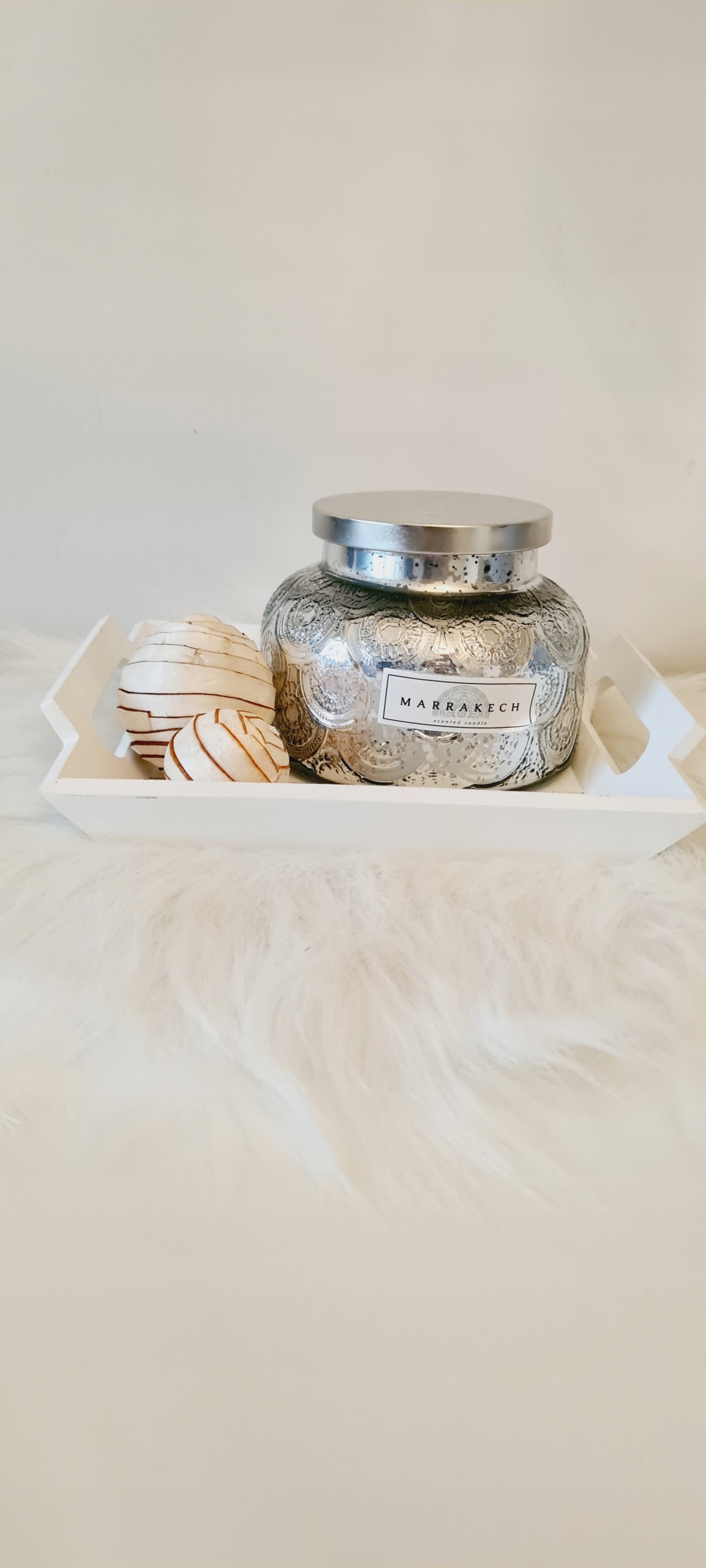 Таця дерев'яна, тарілка біла, таця декоративна, 23х20х4,5