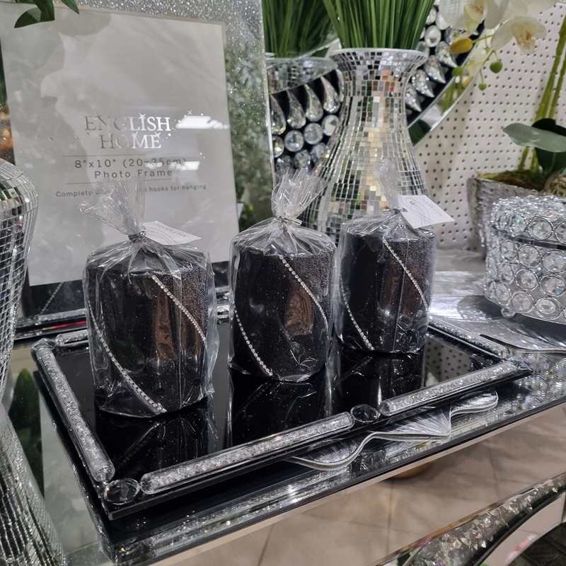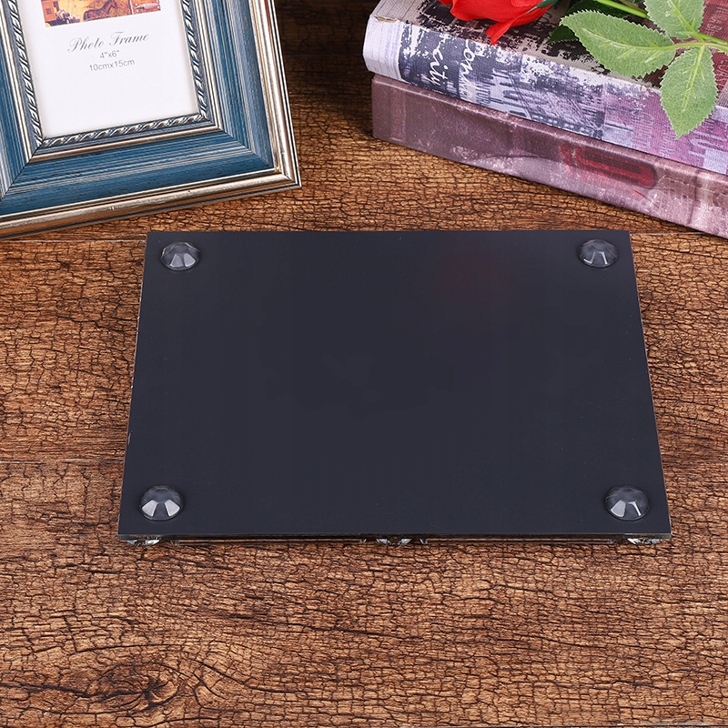 ПІДНОС ДЛЯ ДЗЕРКАЛ ЧОРНЕ ДЗЕРКАЛО + СРІБНІ КРИСТАЛИ 30x20СМ GLAMOUR 2559-19