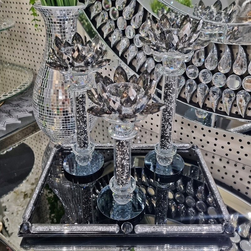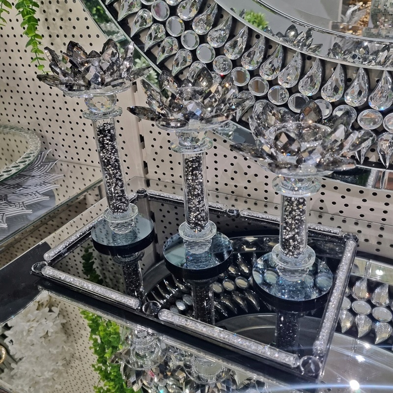 Поєднання чорного дзеркала та кристалів створює дивовижний ефект розкоші та елегантності.