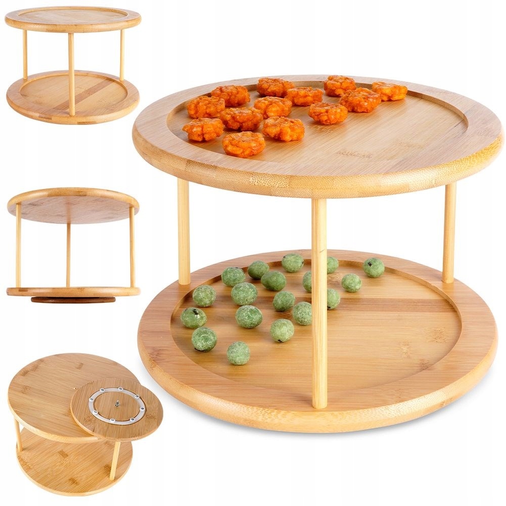 Двоярусна сервірувальна та демонстраційна тарілка, виготовлена з дерева. Чудово виглядатиме на кексах, печиві, різноманітних десертах, а також закусках і стравах. Ідеально підходить для приготування солодких столів. З його допомогою ми можемо виставити на стіл солодощі та солоні закуски. Підходить для домашнього та професійного використання. Виготовлено відповідно до європейських стандартів.