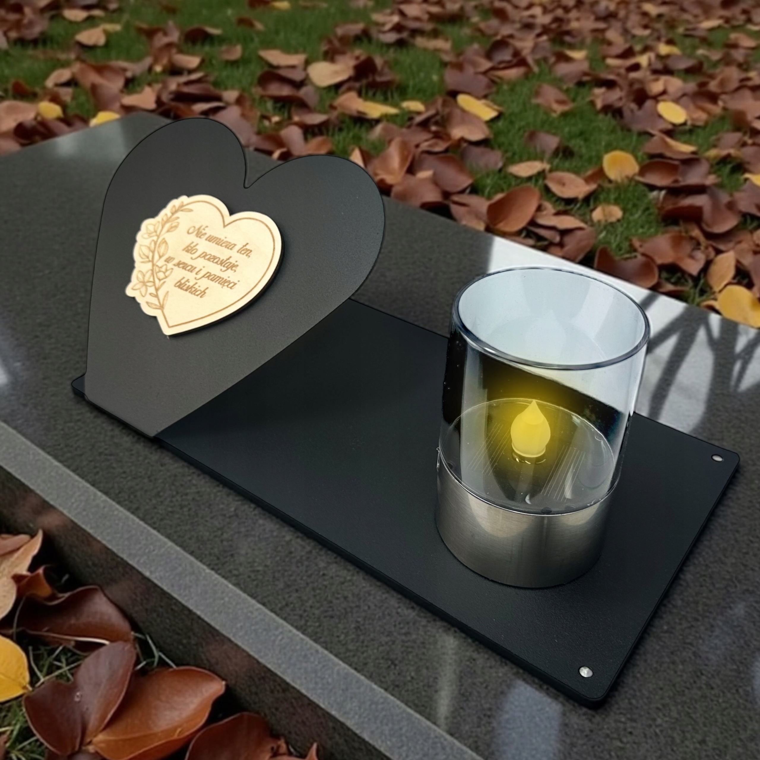 ГРОБНА ТАБЛИЧКА, ПІДСТАВКА ДЛЯ СВІЧОК + СОНЯЧНА СВІЧКА