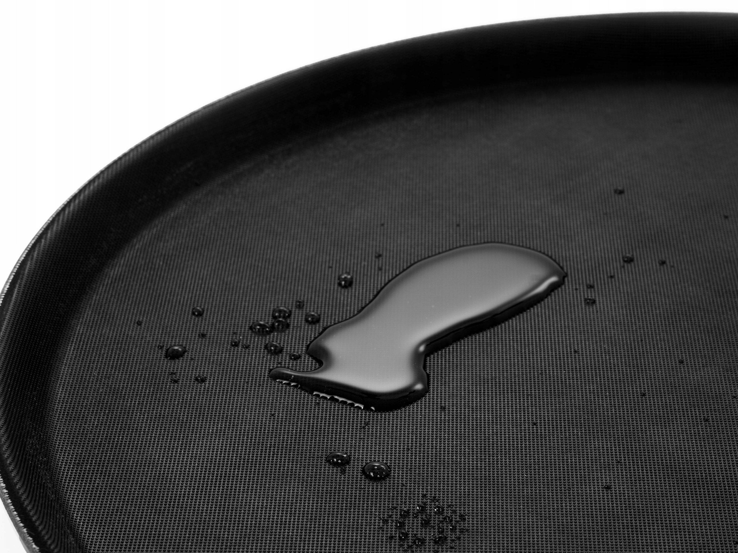 лоток для офіціанта technica , розроблений для безпеки та зручності обслуговування. Круглий лоток, оснащений покриттям, що не має ковзання, що запобігає ковзанню суден та напоїв під час перенесення, що надзвичайно важливо в динамічному робочому середовищі офіціантів.