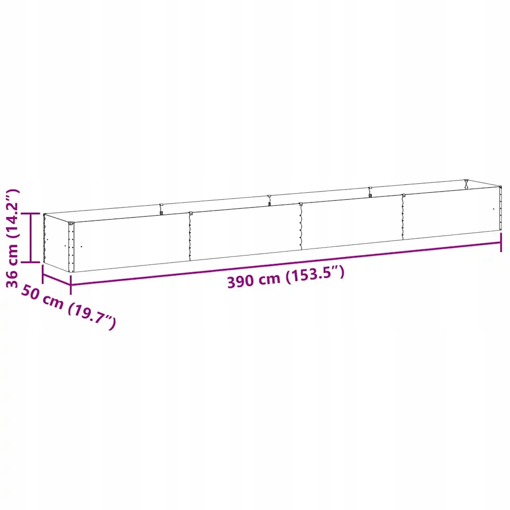 Грядка 390 x 50 x 36 см, оцинкована сталь