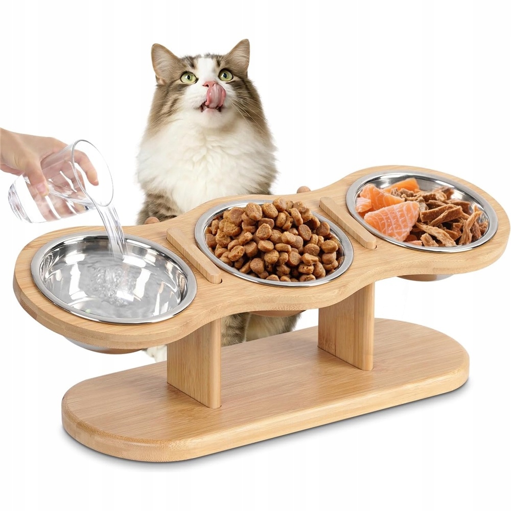🐕🐕 Вишукана майстерність: Наш набір мисок для котів із трьох частин має елегантна нековзна дерев'яна основа, що демонструє майстерність виконання. Основа є стабільною та нековзкою, ефективно запобігає проливанню та зменшує дискомфорт під час їжі, забезпечуючи більший комфорт для вашої кішки.