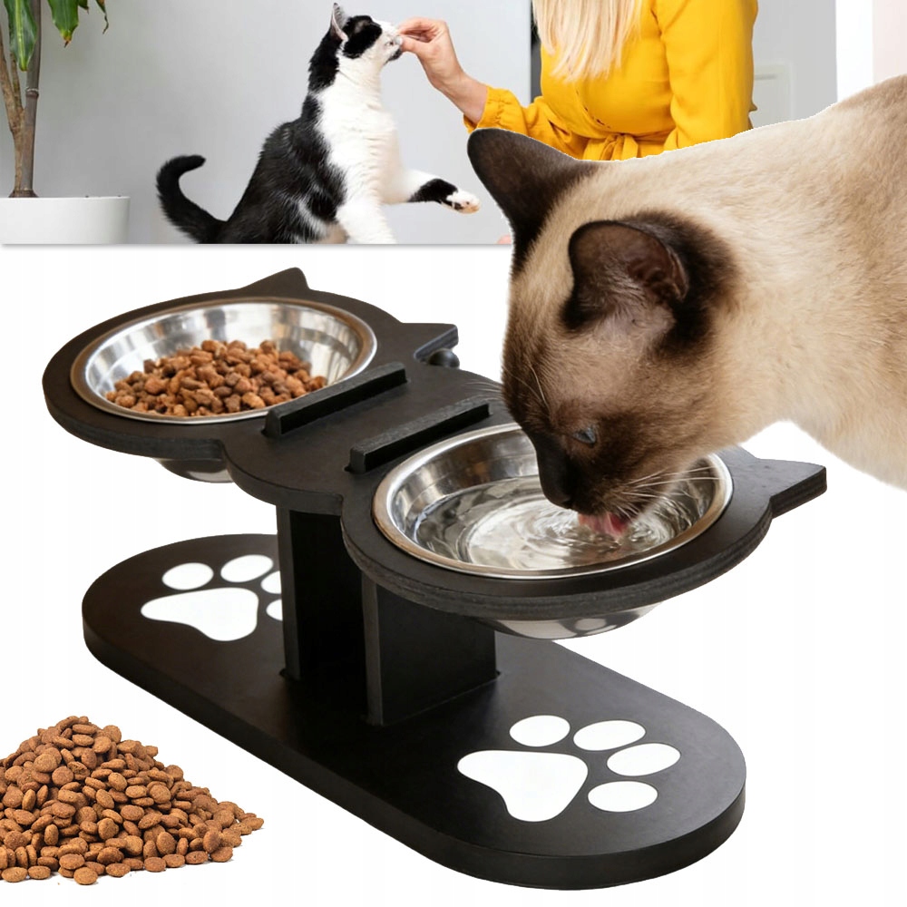 Дерев'яна рама корму для котів міцна та має високоякісне покриття. Піднесена миска для котів із 2 мисками з нержавіючої сталі стійка до перекиду та не ковзає. Годівниця для котів залишається стійкою на підлозі навіть з живими котами.