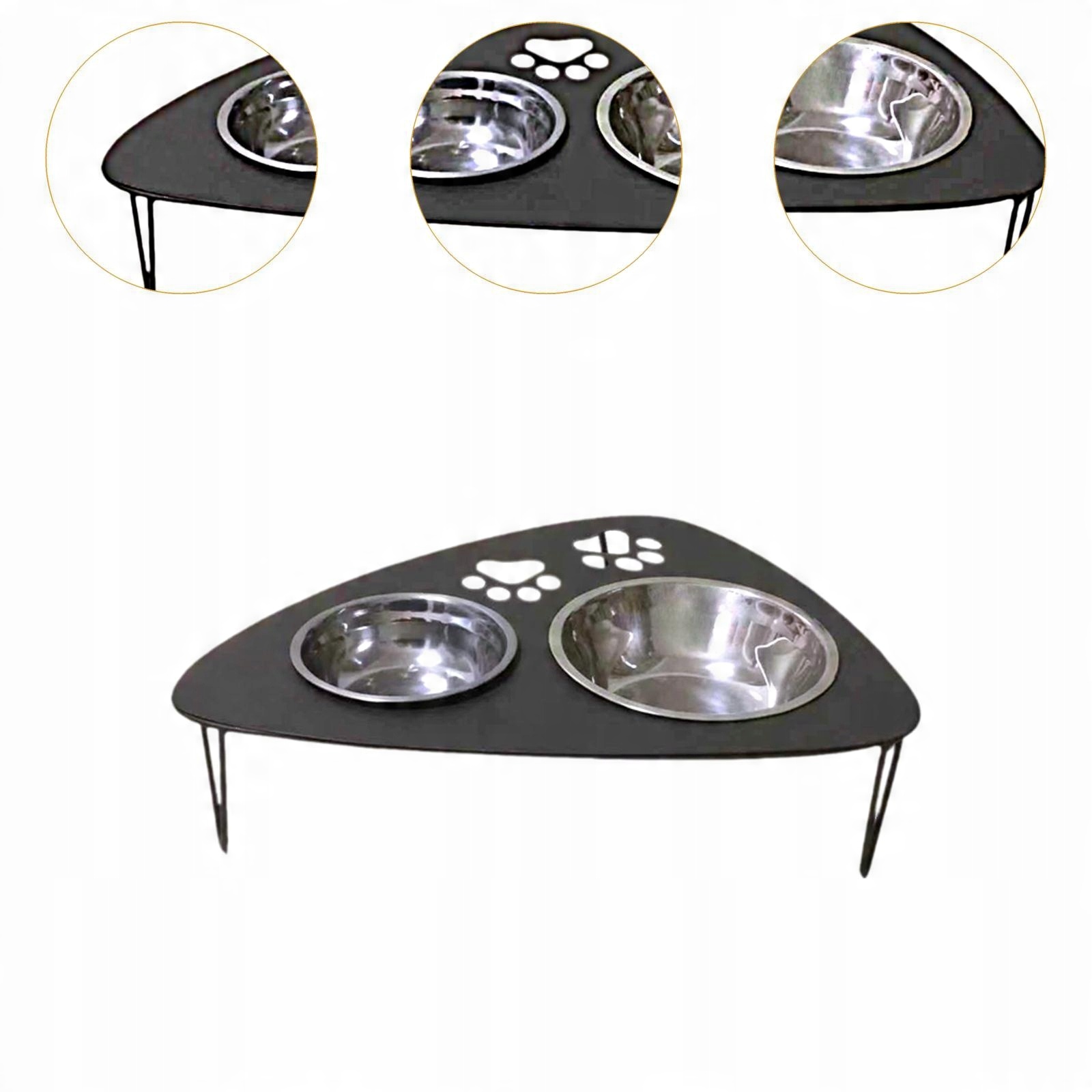 [Підняті миски для котячого корму та води з інноваційним дизайном прорізів]: Конструкція прорізів дозволяє мискам розташовуватися рівно, міцно та довговічно, забезпечуючи стабільність під час використання, зберігаючи цілісність конструкції з нержавіючої сталі