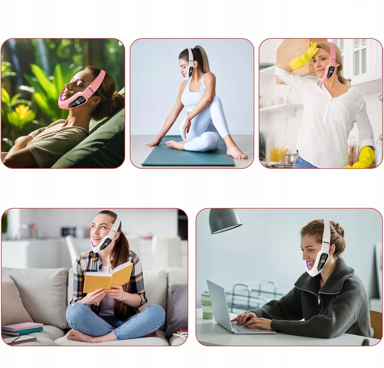 Пристрій для масажу обличчя, розроблений для адаптації до будь-якої форми обличчя завдяки функції складання, може ідеально відповідати контурам вашого обличчя, легко відрегулювати ремінь відповідно до себе.