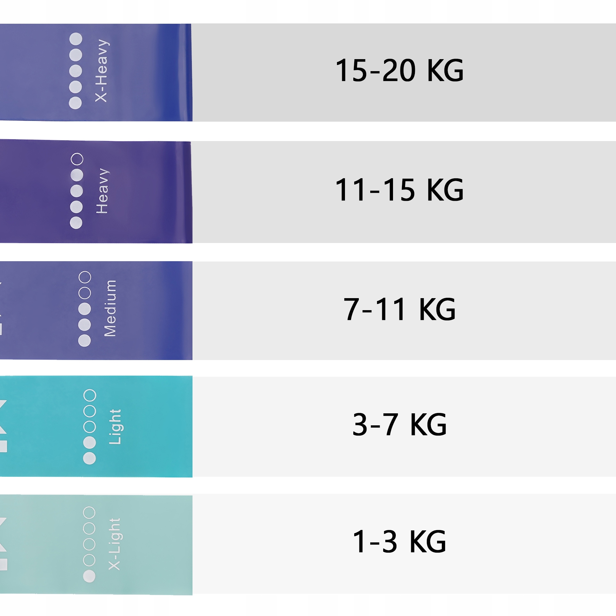 ✔ Різні рівні опору - 5 стрічок різної складності:
