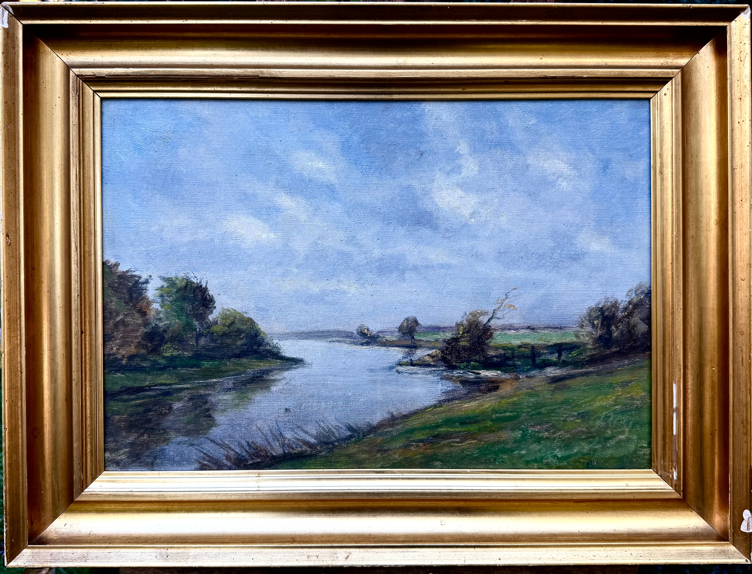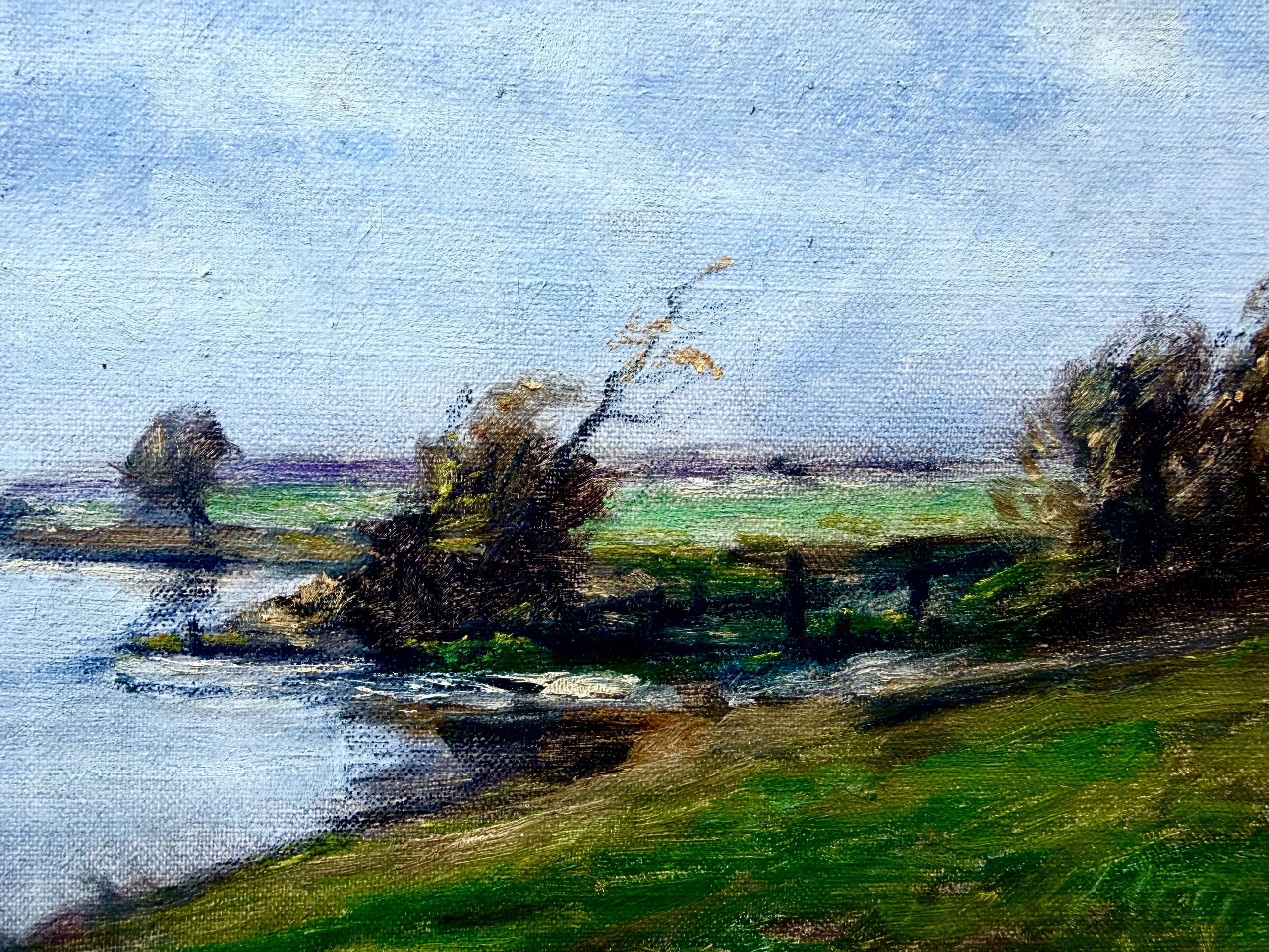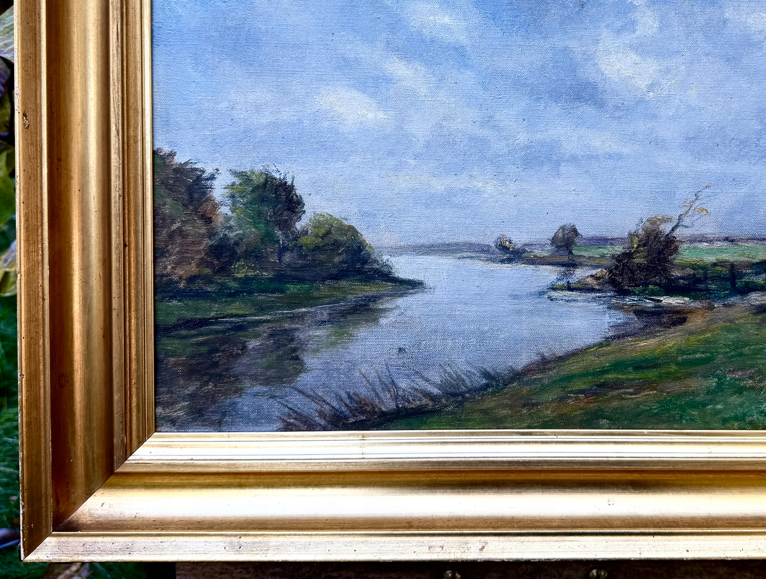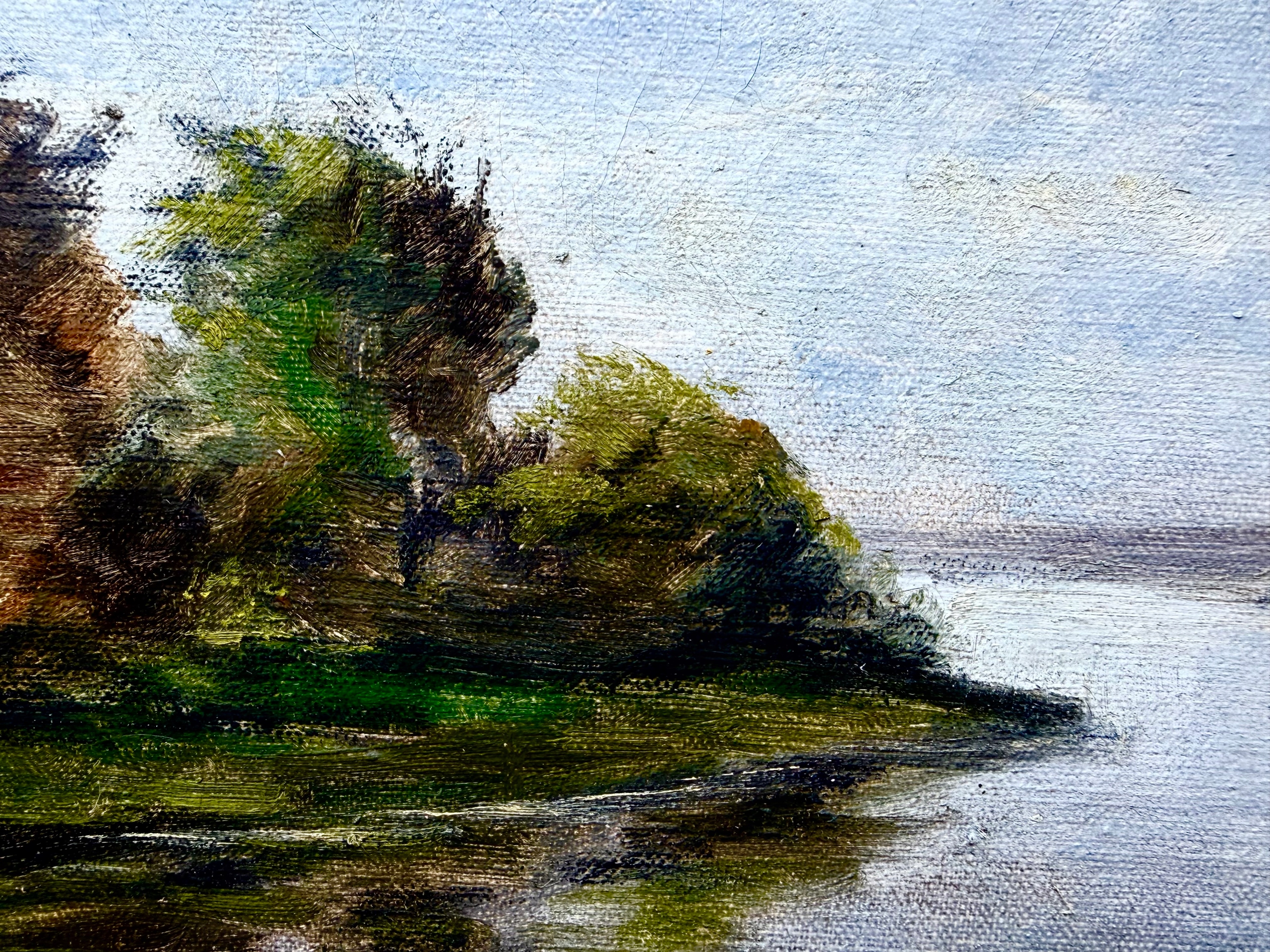 ПІДПИС ОРИГІНАЛУ СТАРОЇ КАРТИНИ - Расмус СОРЕНСЕН - РІЧКА СЕРЕД ДЕРЕВ