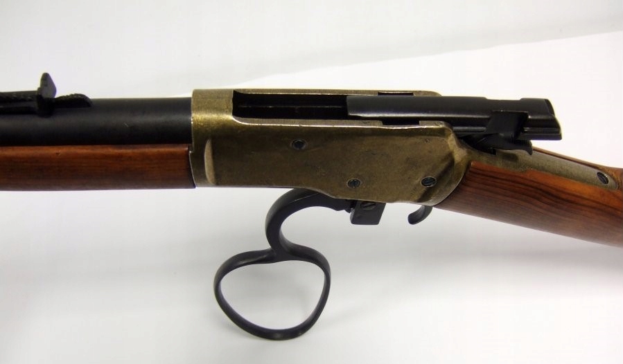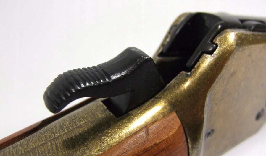 Копіка виготовлена з латунного ZnAl у поєднанні з чорним стволом. Ліжко та ложа виготовлені з дерева коричневого кольору. Має ефективний важільний механізм, тому після перезарядки можна повернути т.зв сухий постріл. Гвинтівка точно відтворена до найдрібніших деталей, і для шанувальників персонажа Дж. Вейна, мабуть, найважливішим буде приклад, позначений його ініціалами.