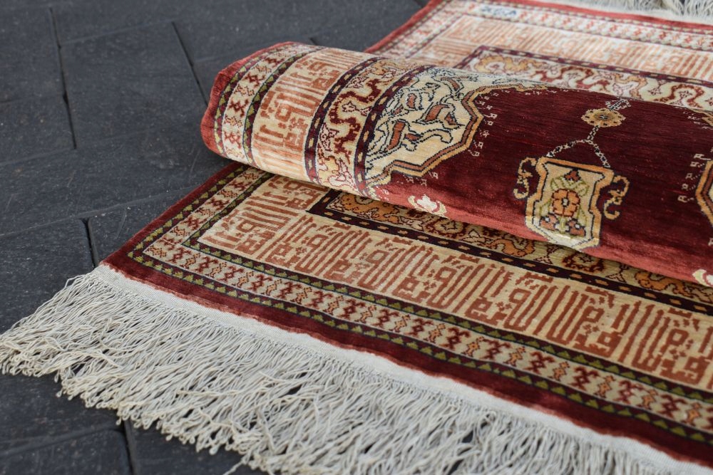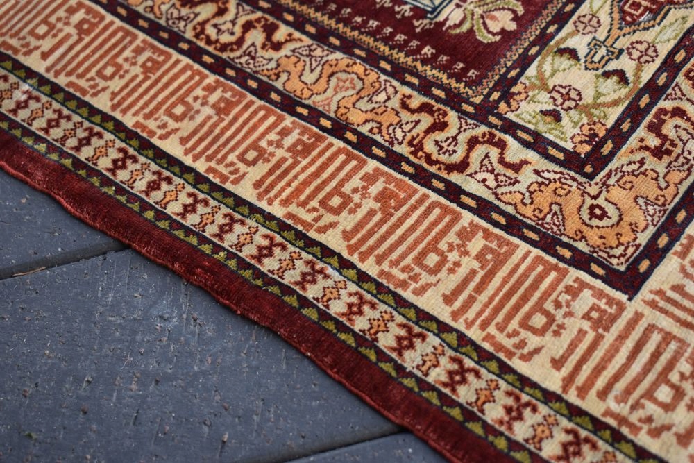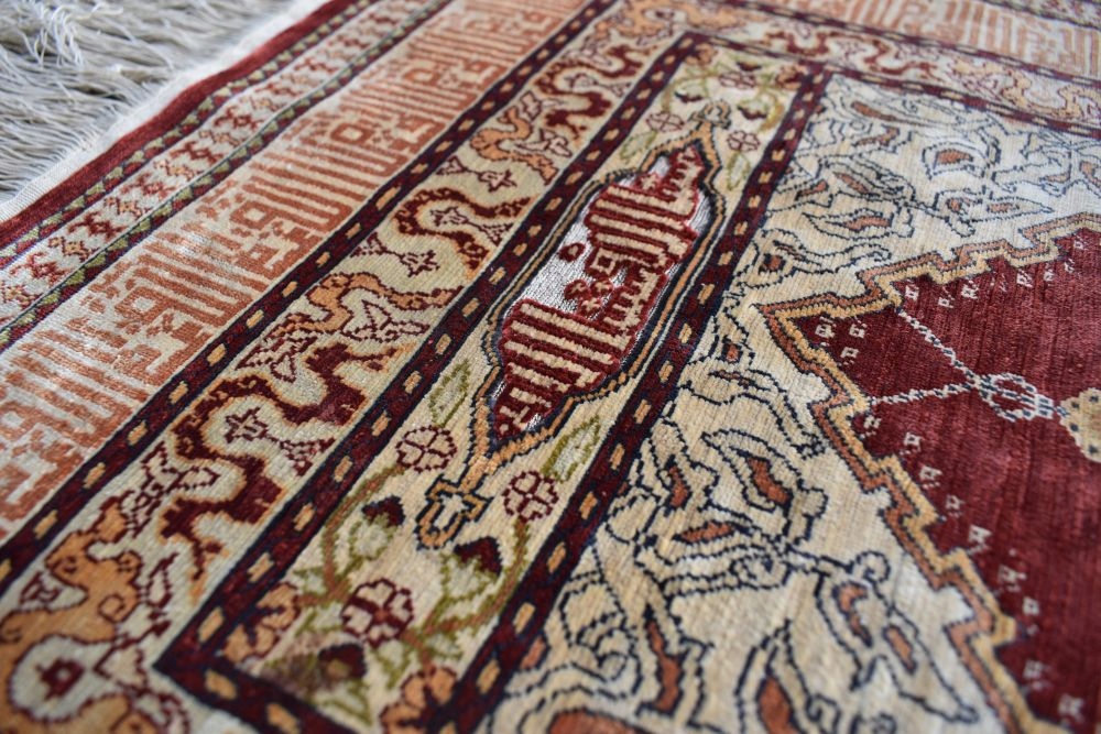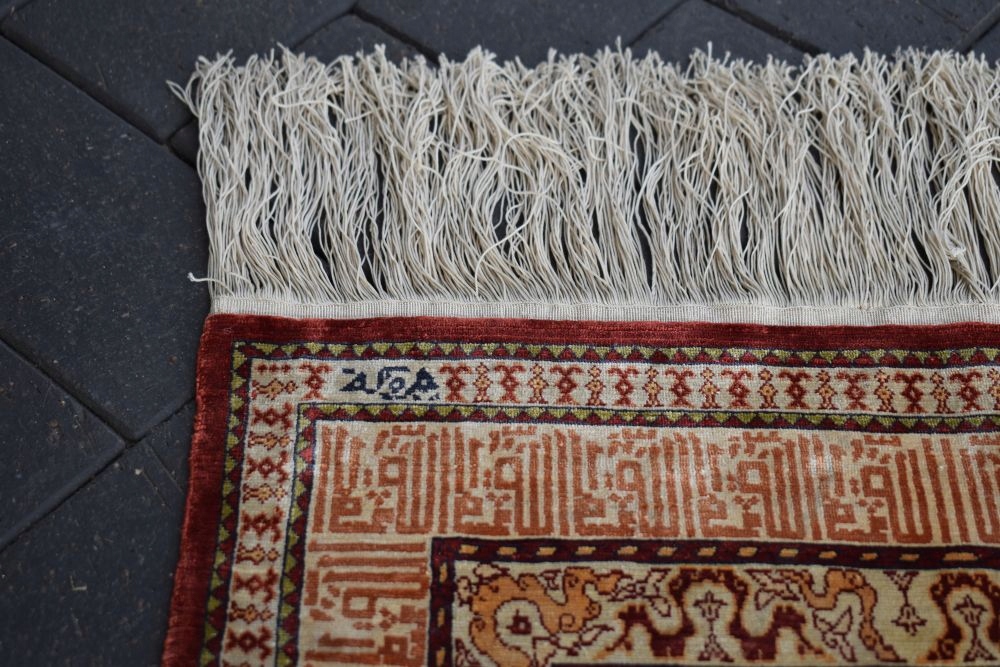 На наступному аукціоні я пропоную вам цінний, престижний, виготовлений з натурального шовку на шовковій основі з додаванням золотих ниток, складного ручного виткання, підписаний турецький килим HEREKE.