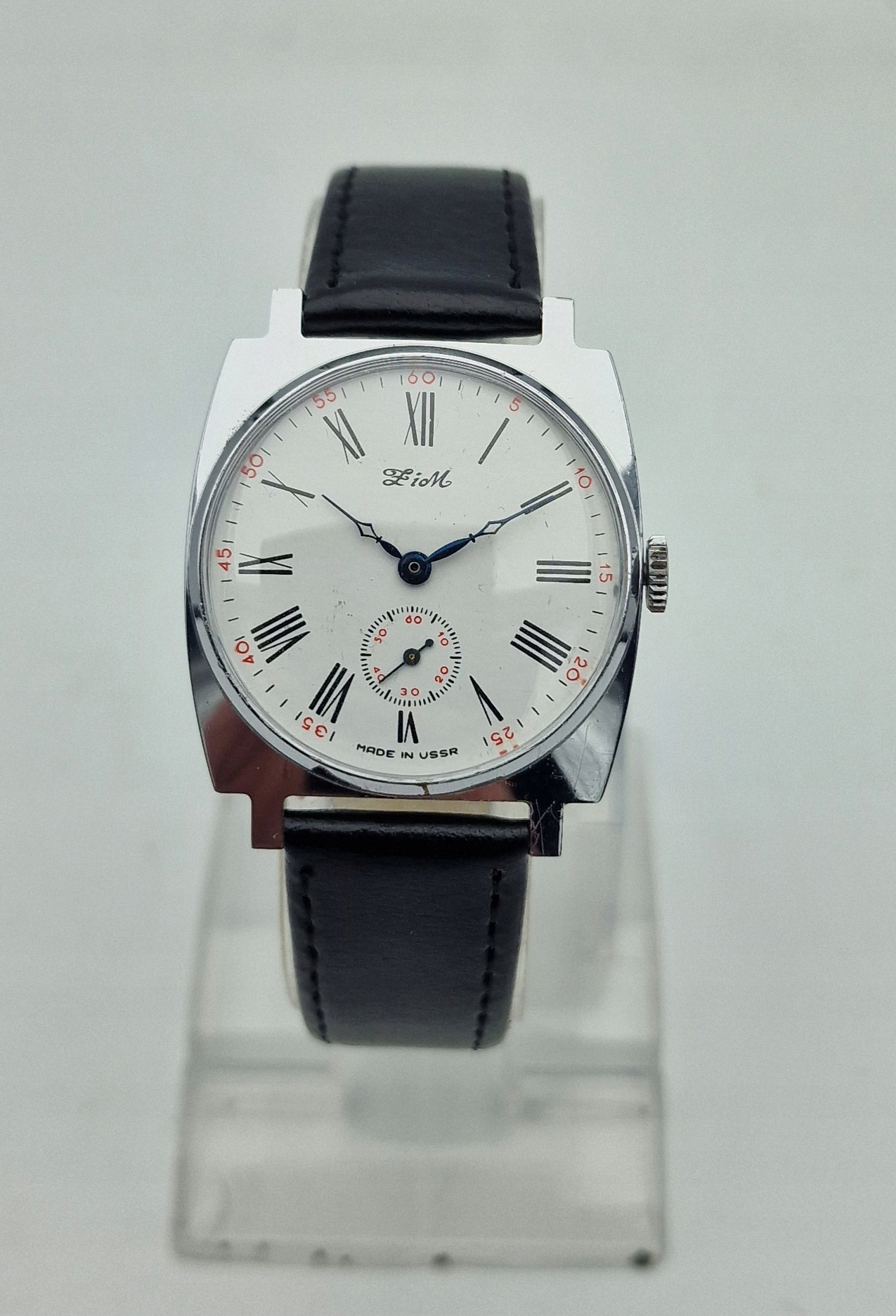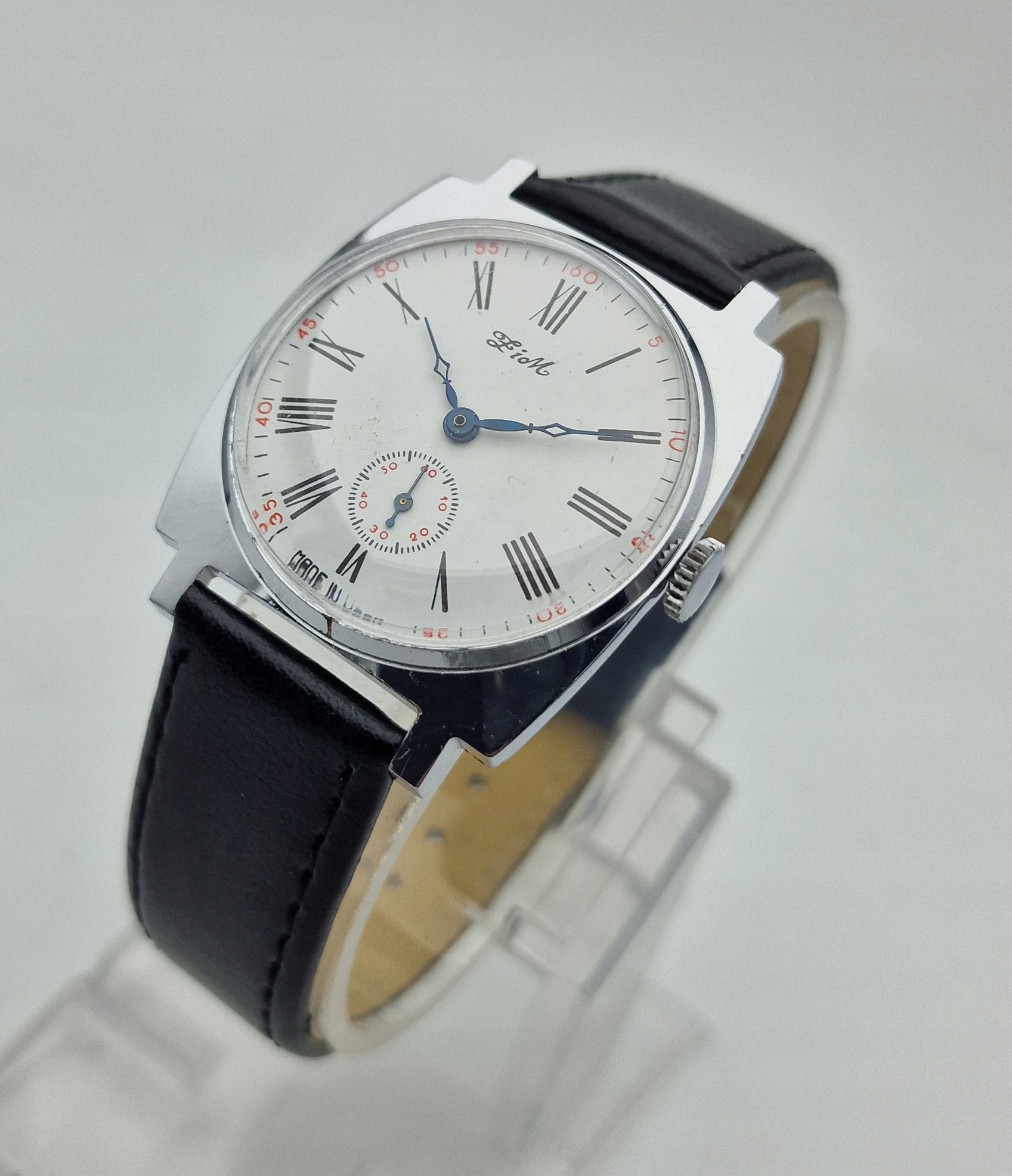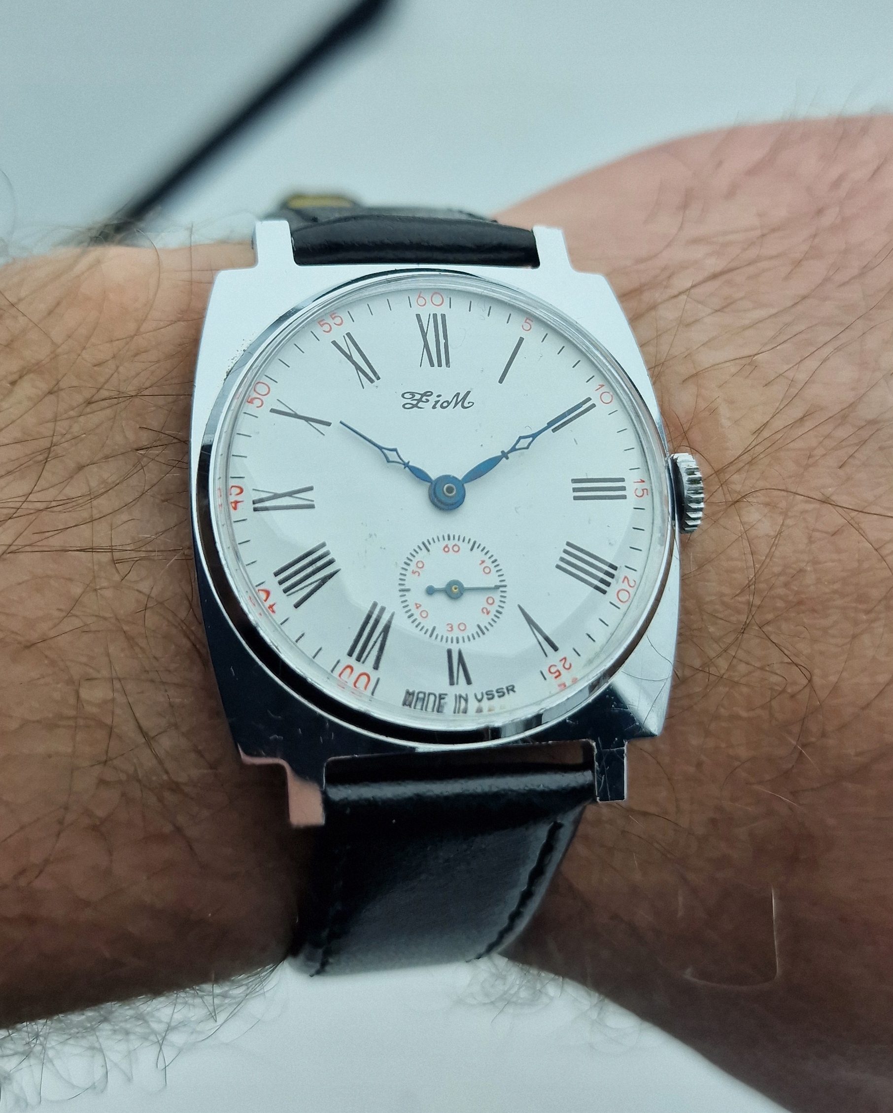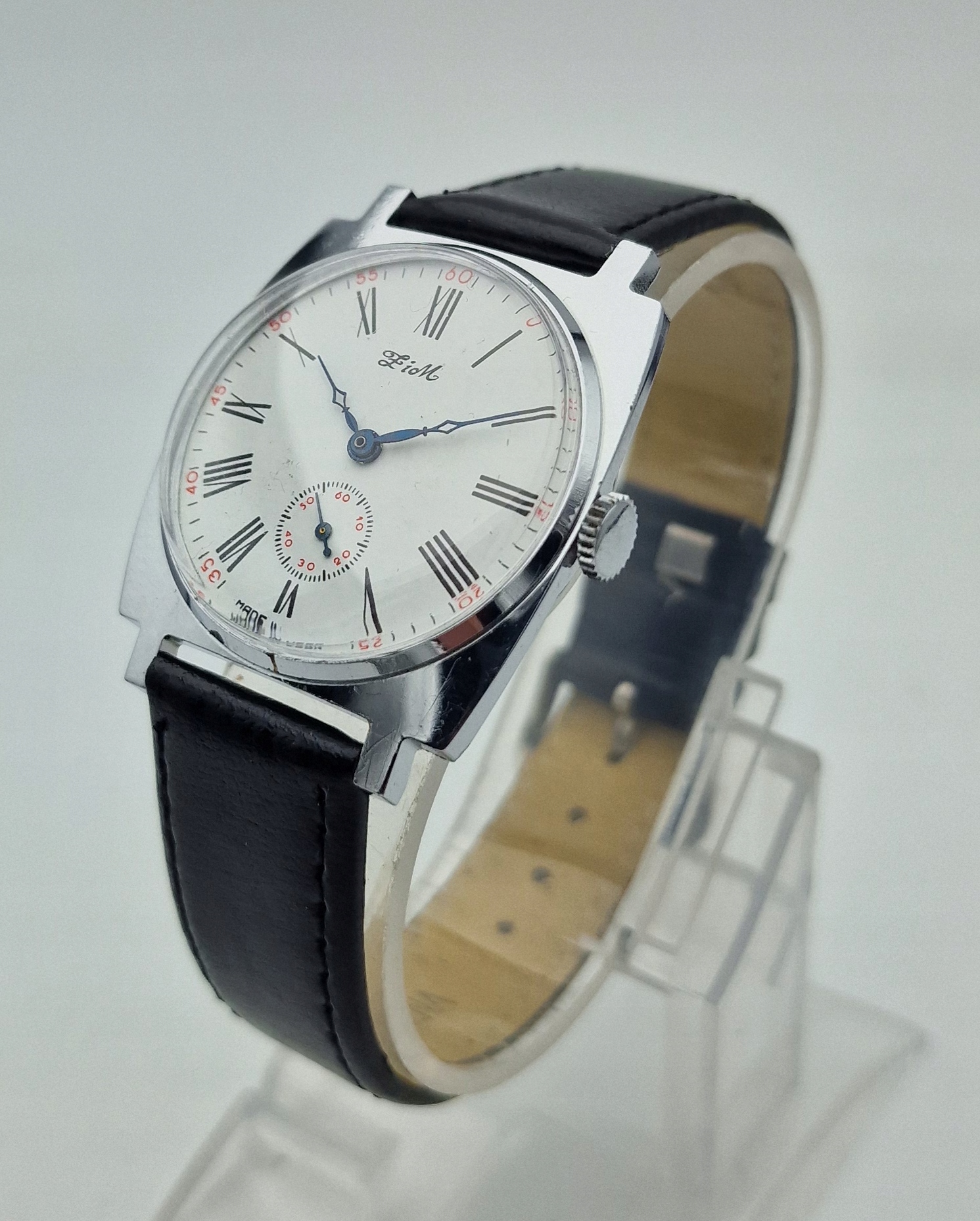 - білий металевий щит з чорними римськими номерами та секундами о шостій годині. Підписаний щит: " зима, зроблена в СРСР ". Щит у ідеальному стані, як на представленій фотографії.