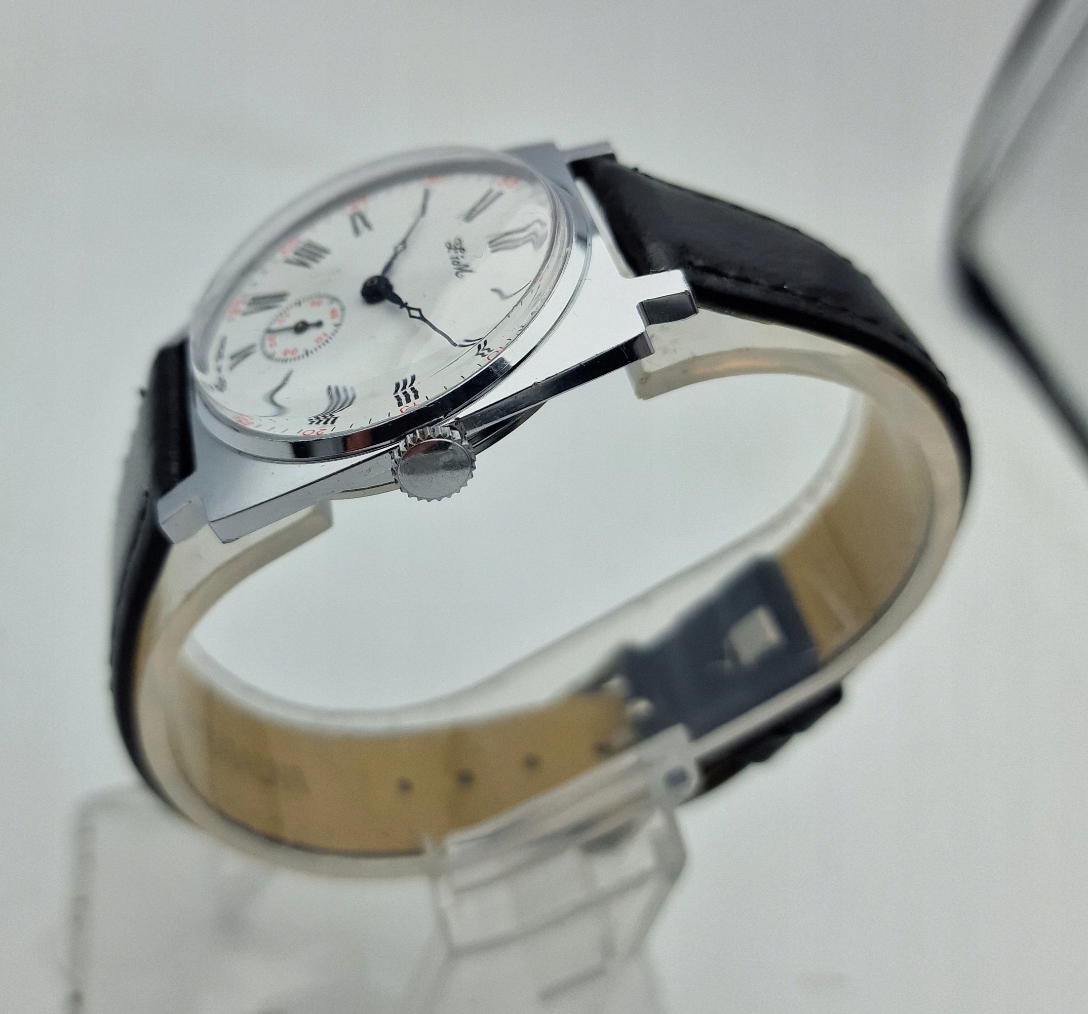 4 Механізм на хорошій та точній ході після огляду та обслуговування на ході годинника, у відмінному стані.- Chrome Convelope із затягнутим дном. Мереживо майже в ідеальному стані. Конверт майже ідеально зберігається, як у представлених фотографіях.