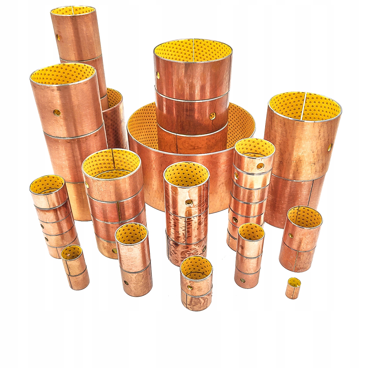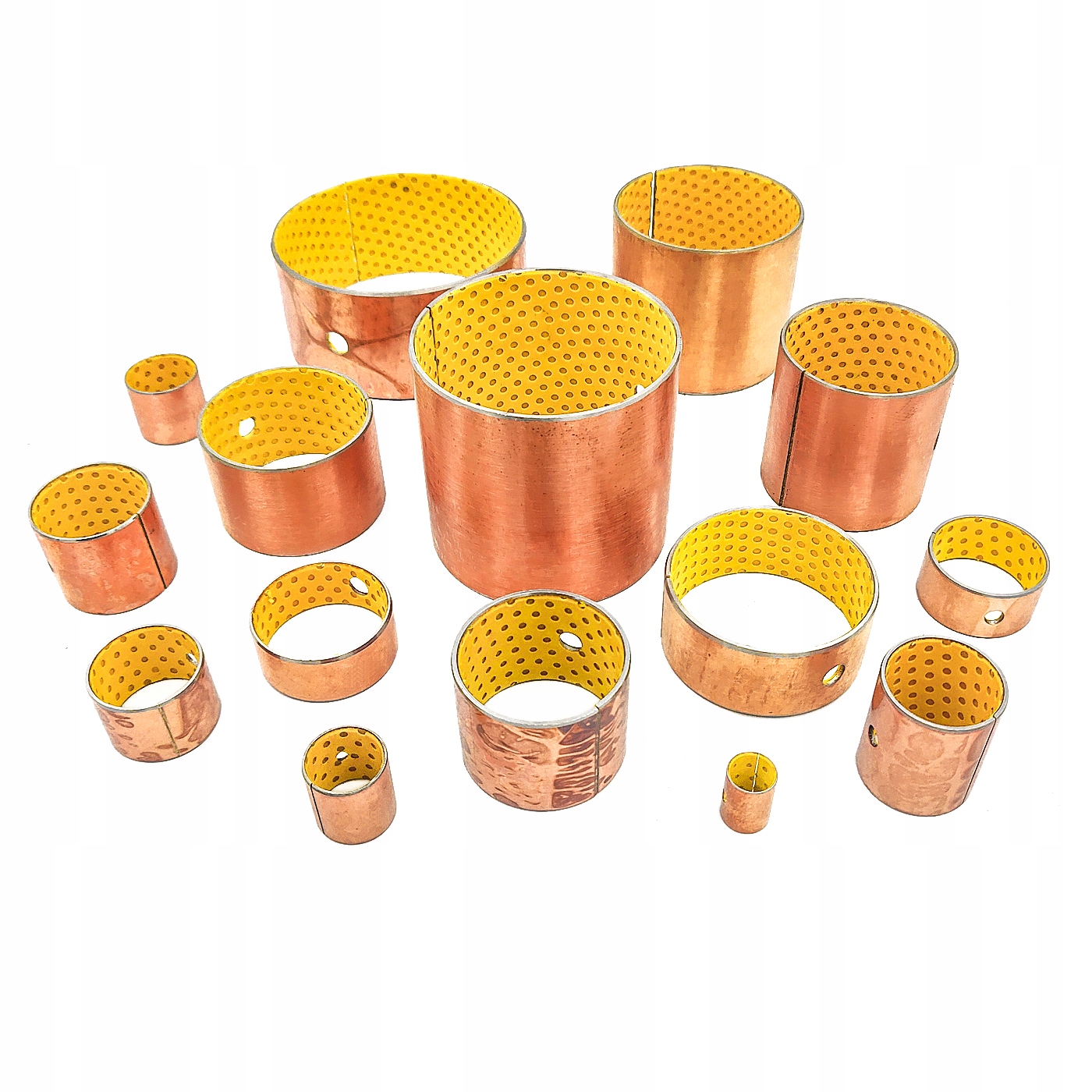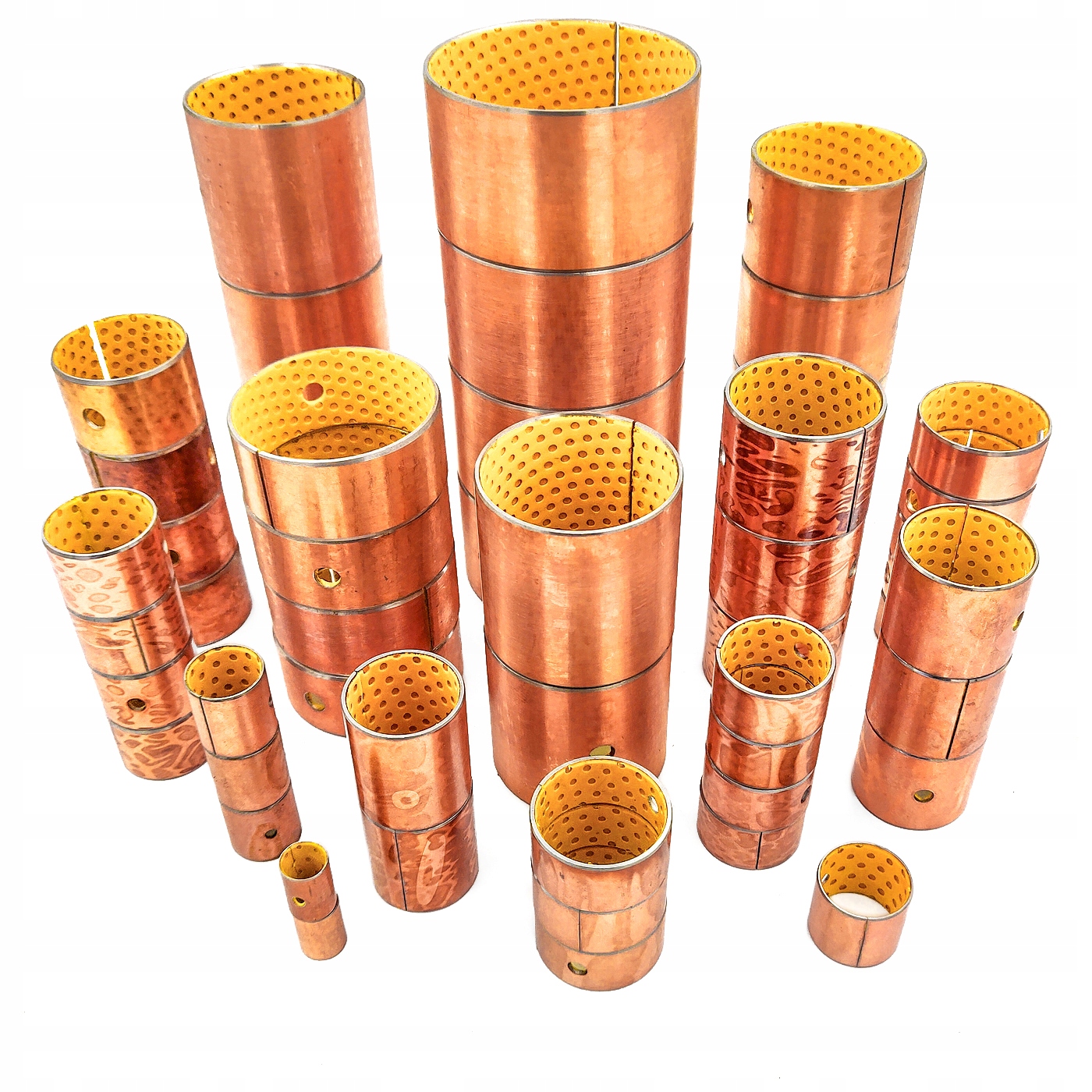 Високоякісна сталева гільза, призначена для роботи в складних умовах. Підходить для роботи в обертальному та коливальному русі. Зовні покритий шаром бронзи, що робить його високостійким до стирання. Внутрішня сторона покрита ПОМ-композитом зі спеціальними канавками для змащення.