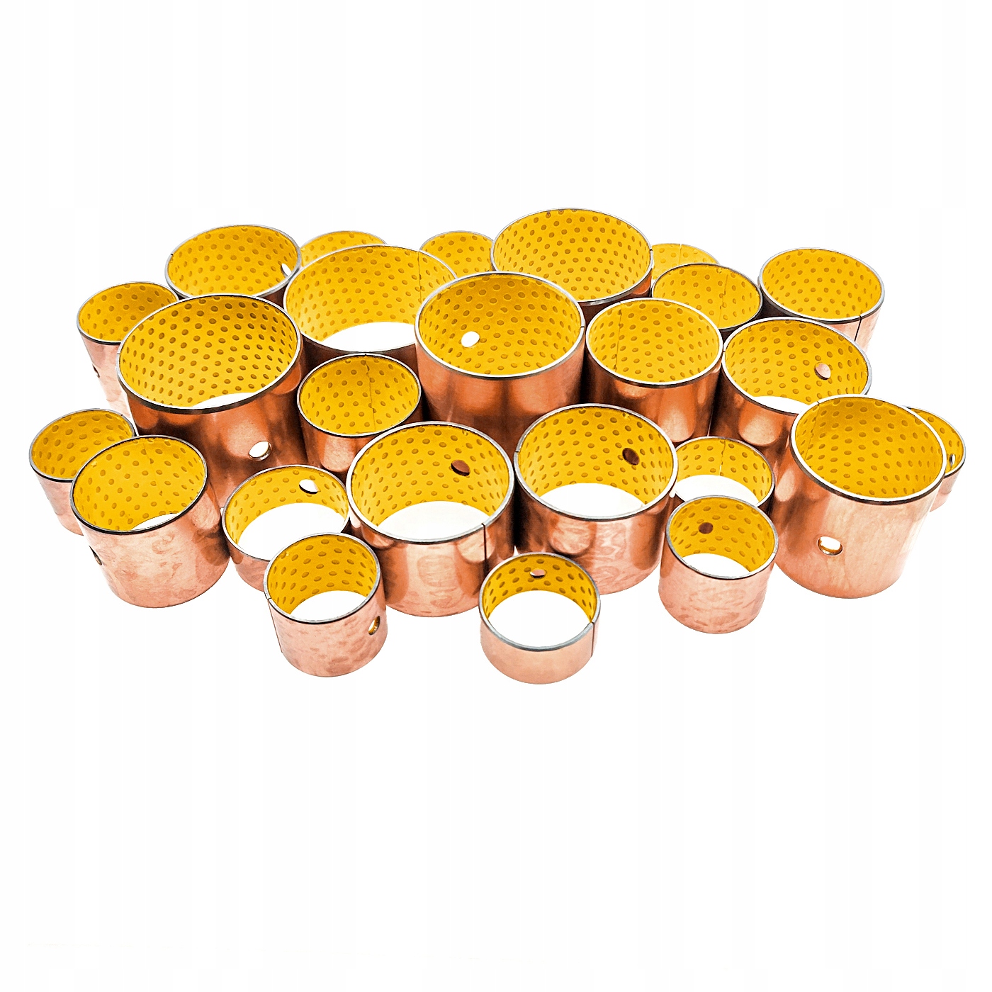 Високоякісна сталева гільза, призначена для роботи в складних умовах. Підходить для роботи в обертальному та коливальному русі. Зовні покритий шаром бронзи, що робить його високостійким до стирання. Внутрішня сторона покрита ПОМ-композитом зі спеціальними канавками для змащення.