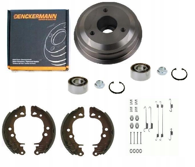 КОМПЛЕКТ ГАЛЬМІВНИХ БАРАБАНІВ MIKODA/QUINTON HAZELL, ГАЛЬМІВНИХ КОЛОДОК DENCKERMANN, ПРУЖИН ДЛЯ КОЛОДОК ТА НАБІР ЗАДНІХ ПІДШИПНИКІВ