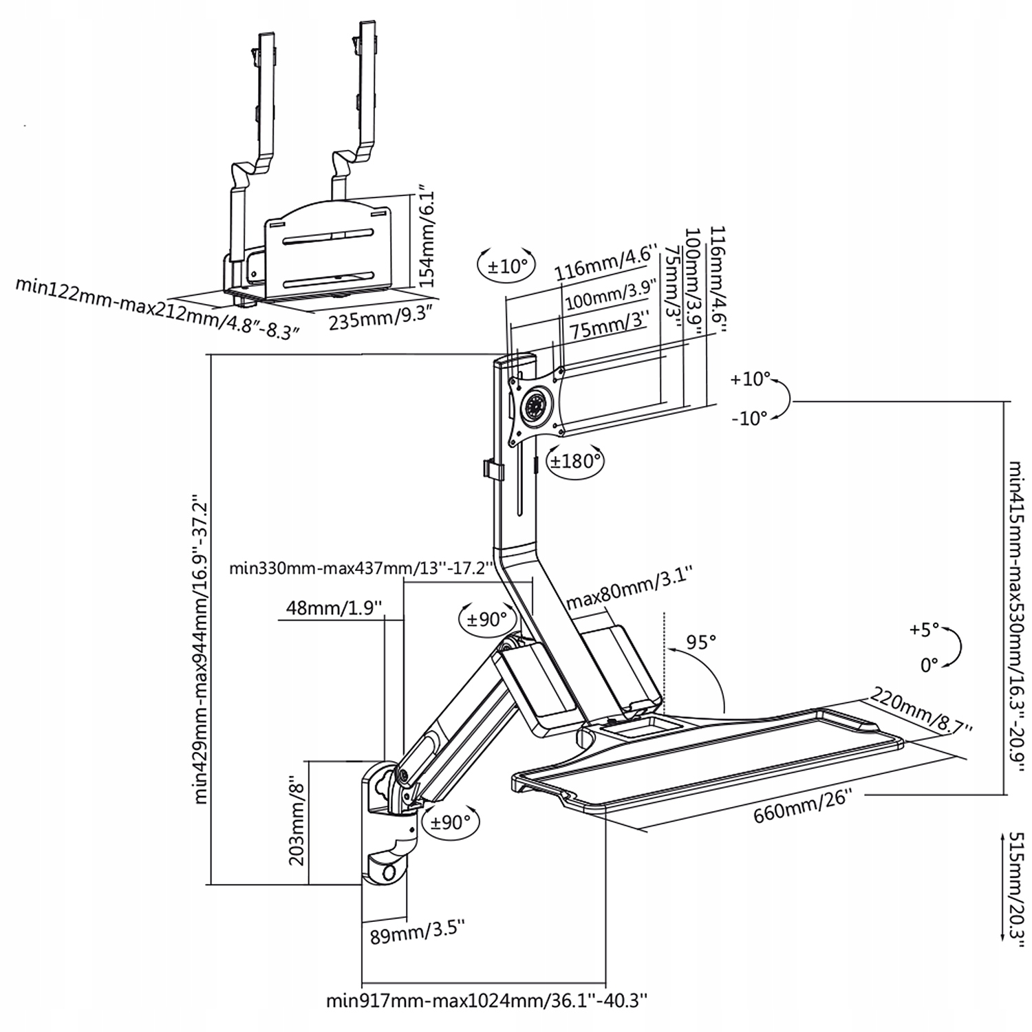 Елементи ручки були ідеально відповідні, щоб забезпечити стабільну та безпечну підтримку монітора та клавіатури . Зміна положення від сидіння на стояче положення забезпечує великий комфорт на роботі та оптимізує ергономіку. 4