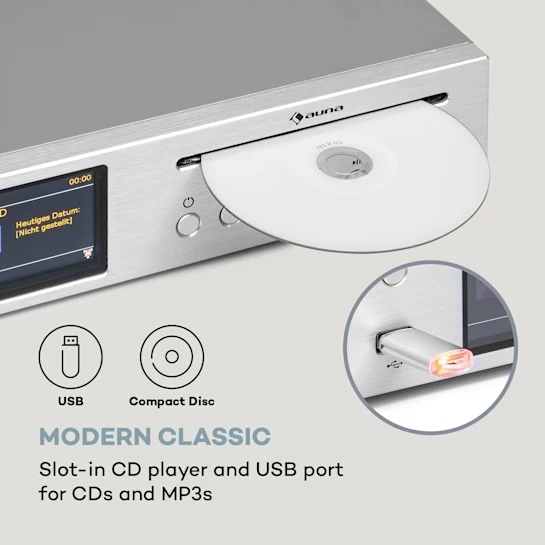 Сучасна класика: програвач компакт-дисків зі слотом і порт USB для компакт-дисків і MP3