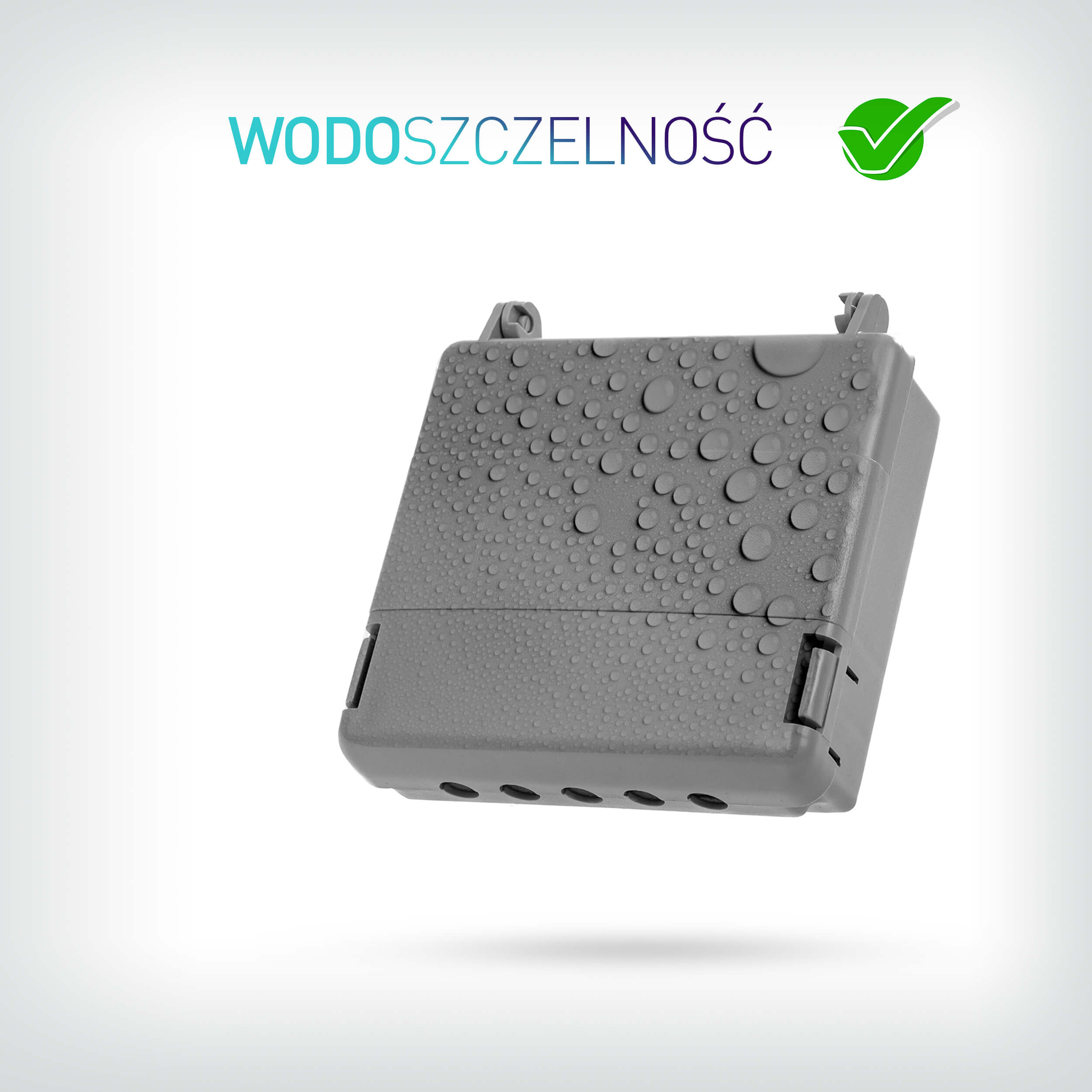 Суцільний корпус, виготовлений із стійкого до погоди пластику. Це забезпечує тривалу експлуатацію навіть у найскладніших погодних умовах. Сонце та водонепроникність (IP53). Більша ізоляція між входами та виходами. Роз'єми типу F
